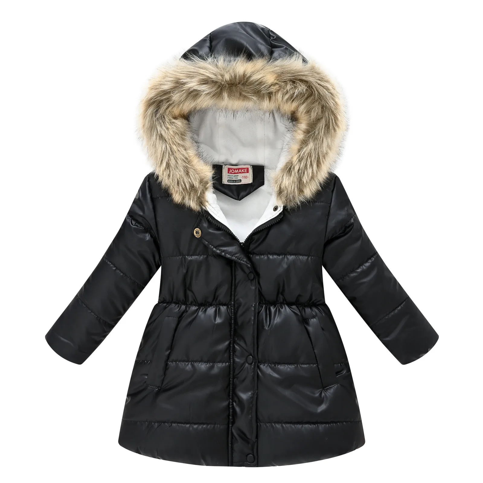 Детская стеганая куртка для мальчиков и девочек, однотонная стеганая куртка с длинным воротником и капюшоном, рождественские новогодние куртки у