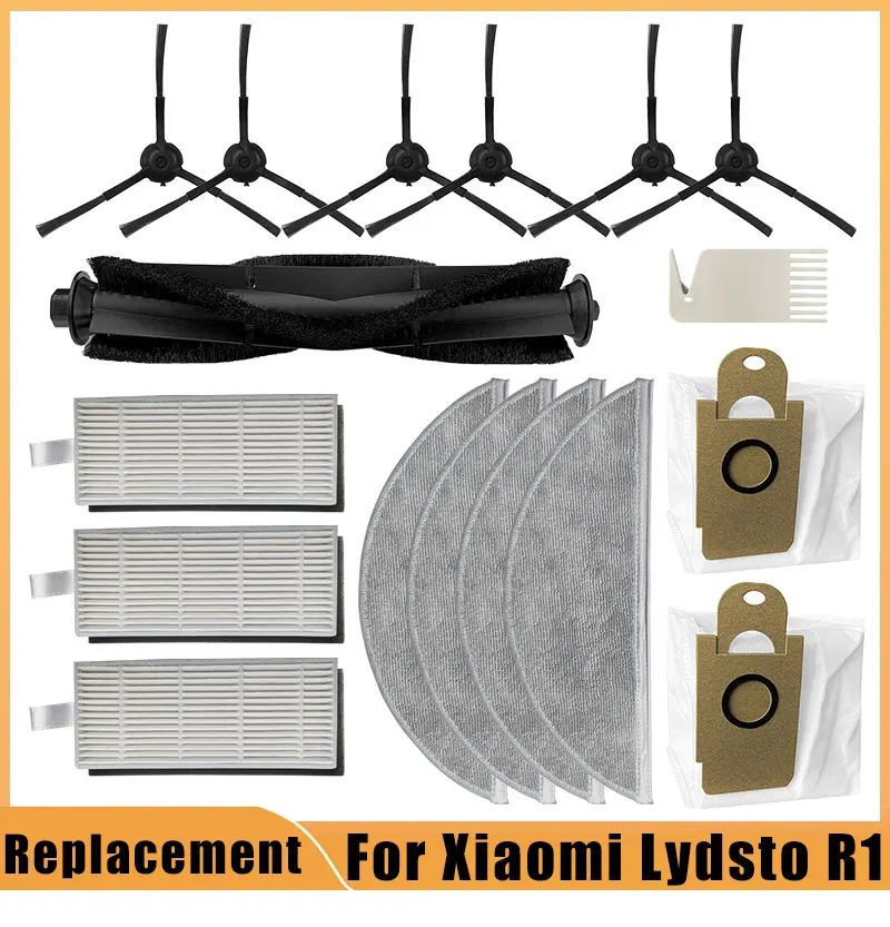 Новинка, Набор тканевых пылесборников для швабры, основная щетка, боковая щетка, запчасти для HEPA-фильтра, подходит для Lydsto R1