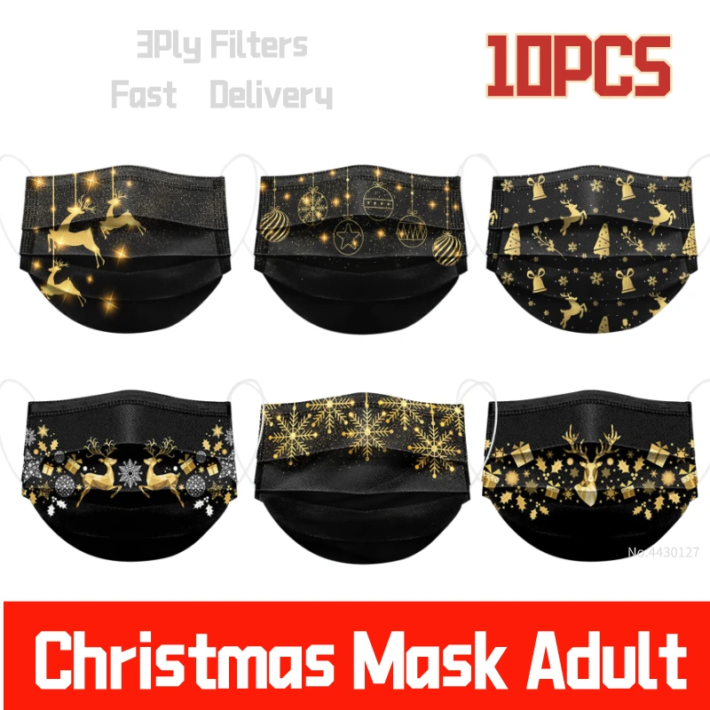 Рождественские маски для лица, одноразовые дыхательные аппараты для взрослых; Рот нос защита, рождественские мотив, 3-Слои из дышащего материала, BlackGold серии