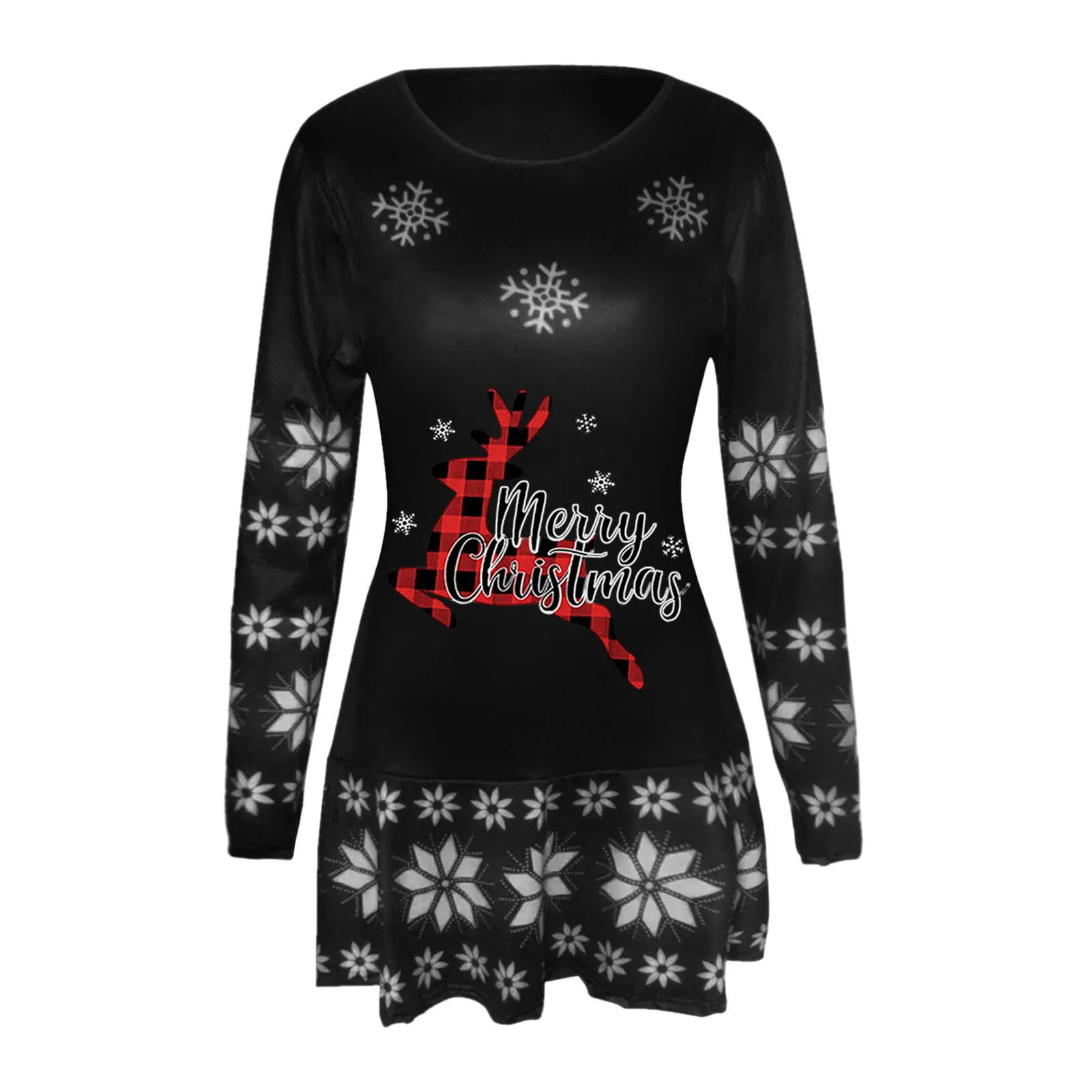 Женское платье-мини с длинными рукавами, повседневное черное платье большого размера на Рождество, осень 2021