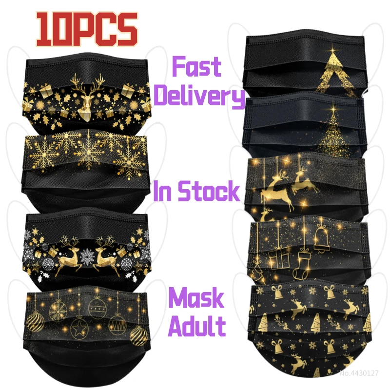 Рождественские маски для лица, одноразовые дыхательные аппараты для взрослых; Рот нос защита, рождественские мотив, 3-Слои из дышащего материала, BlackGold серии