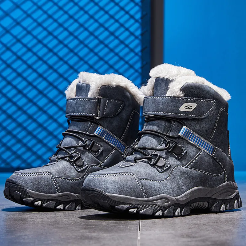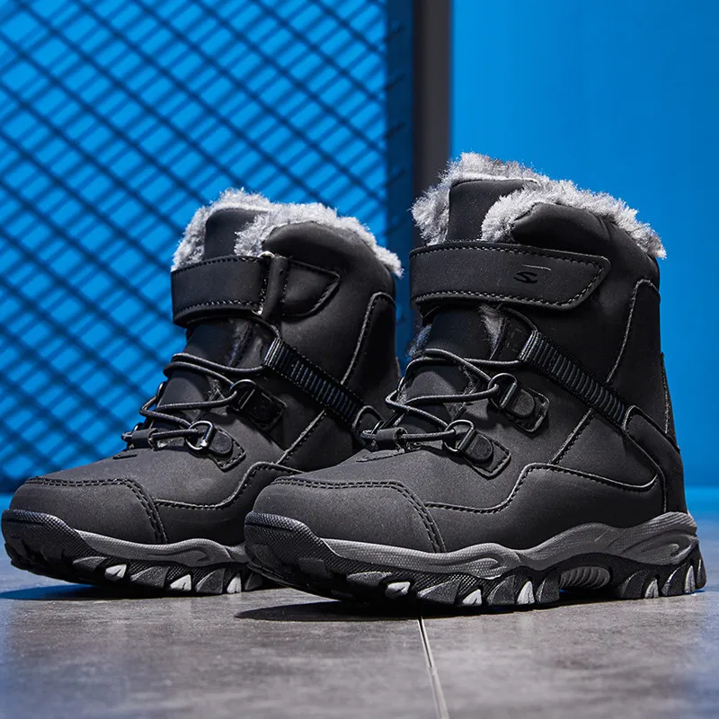 Детские зимние ботинки для мальчиков; Водонепроницаемая уличная теплая обувь с подкладкой из искусственного плюша