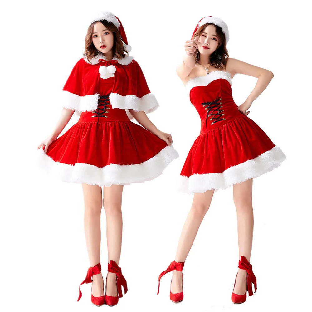 Женский Рождественский костюм для косплея, плюшевый комплект одежды...