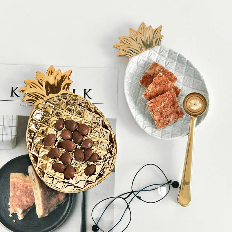 Скандинавская золотистая белая ананас, конфетница, тарелка для хранения ювелирных изделий, посуда, поднос для фруктов, посуда, керамические тарелки для еды