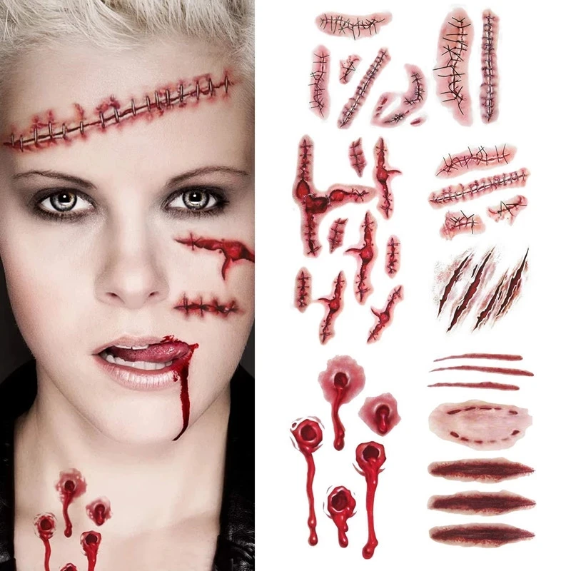 Хэллоуин ужасная рарандезная наклейка на Хэллоуин фальшивые шрамы кровавый костюм зомби искусственный макияж