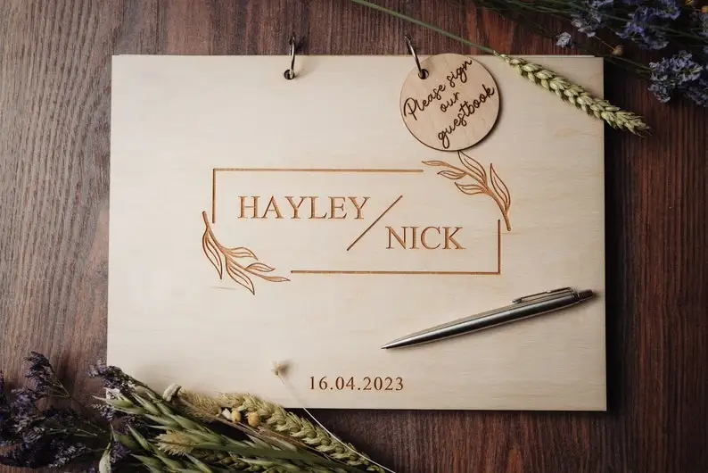 Свадебная Гостевая книга с цветочным рисунком, современная деревянн...