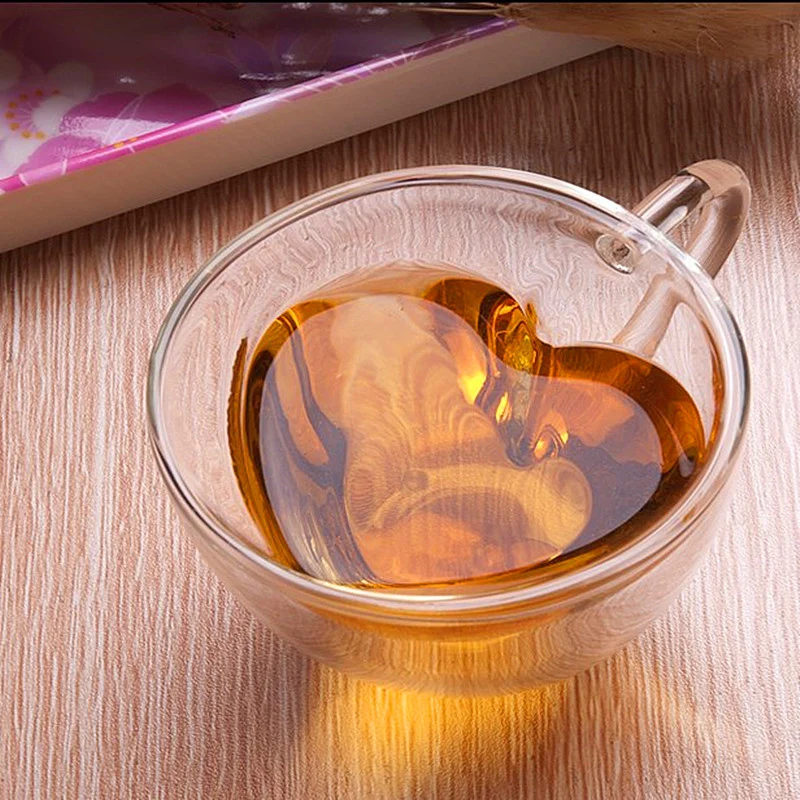 Стеклянные кофейные кружки или чайные чашки с двойными стенками в форме сердца, прозрачные чашки с двойными стенками 68 унций и ручкой FR66