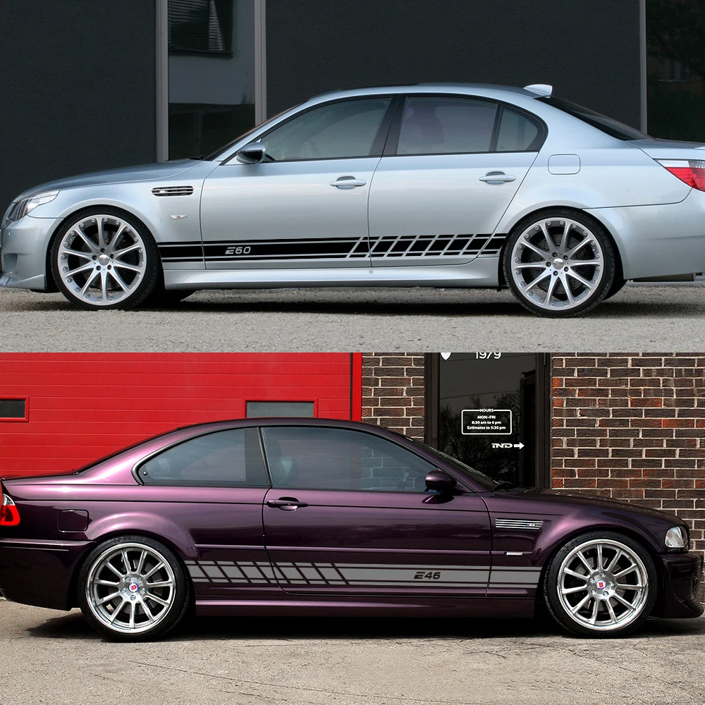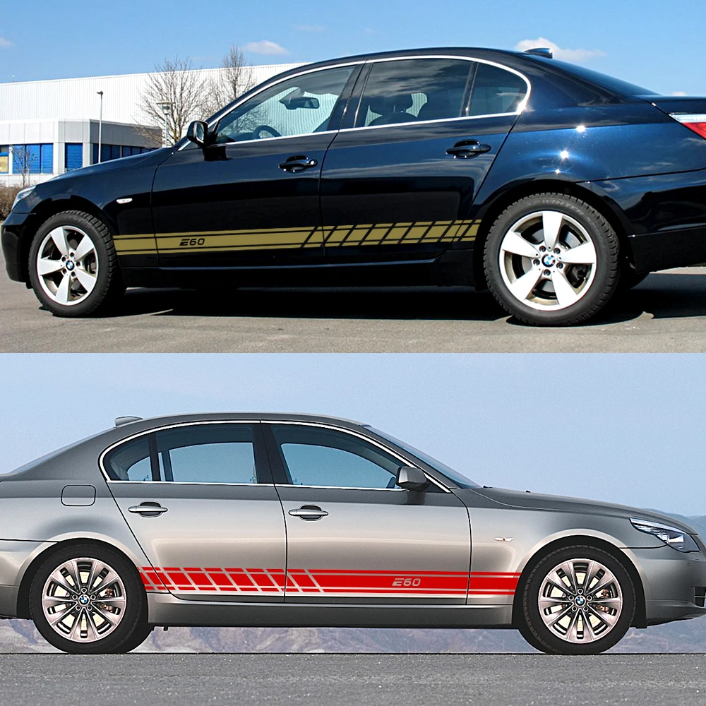 Наклейки на автомобильные двери и боковые юбки в полоску, 2 шт., наклейки для BMW E46, 3 серии, E30, E34, E36, E39, E60, E70, E87, E90, E91, E92, виниловые наклейки