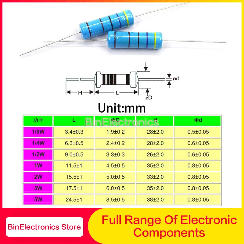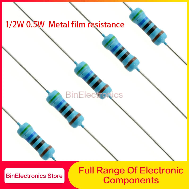 0,5 Вт Резистор из металлической пленки 100 шт. Длина 9 мм ± 1 мм X диаметр 3,2 мм ± 0,5 мм, если вам нужны другие Потребляемая мощность резисторы, нажмите на магазин, чтобы открыть