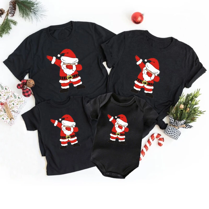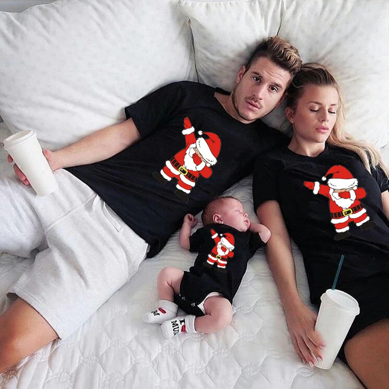 Смешная одежда для семьи с принтом Санта Клауса, хлопковая семейная рубашка с коротким рукавом, модель отца, матери