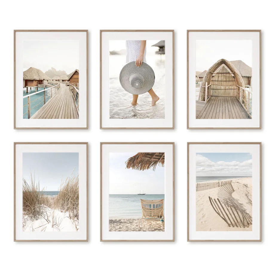 Деревянная мозаика, соломенный коттедж, морской пляж, язычок на стену, Художественная Картина на холсте, нордикастеры и принты, декор интерьера гостиной