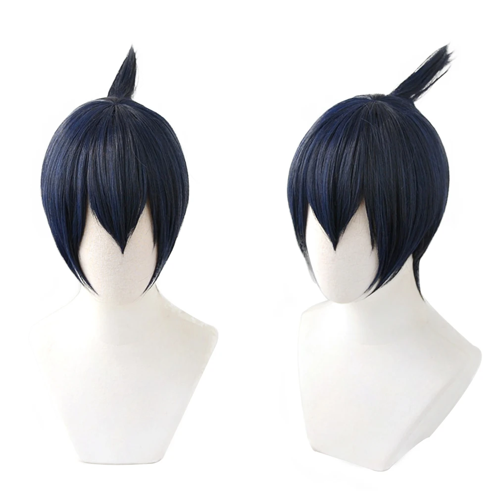 Парик для косплея аниме человек-бензопила хаякава, термостойкий из синтетического волокна, с короткими волосами темно-синего цвета, для ролевых игр, с шапочкой