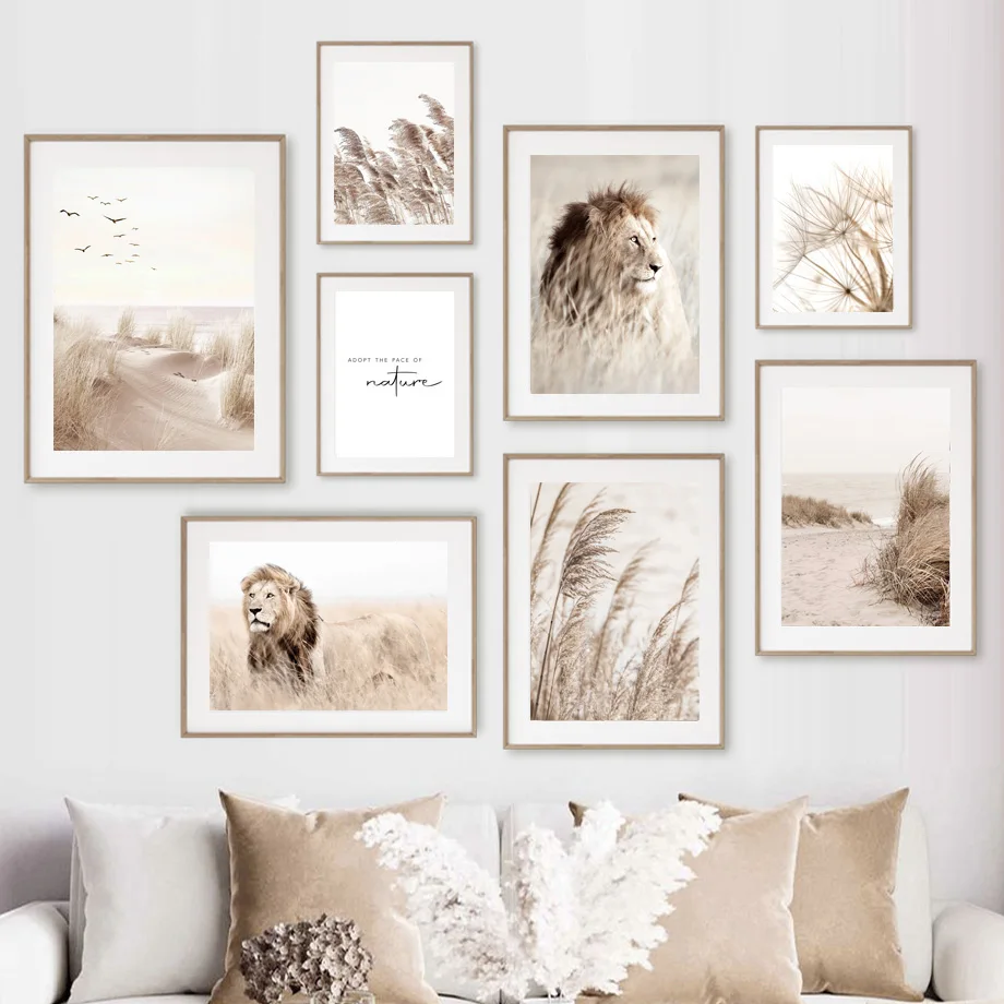 Язычковая Одуванчик Лев природа скандинавиа бежевый стиль настенная живопись на холсте нордикаты и принты для гостиной интерьерный Декор