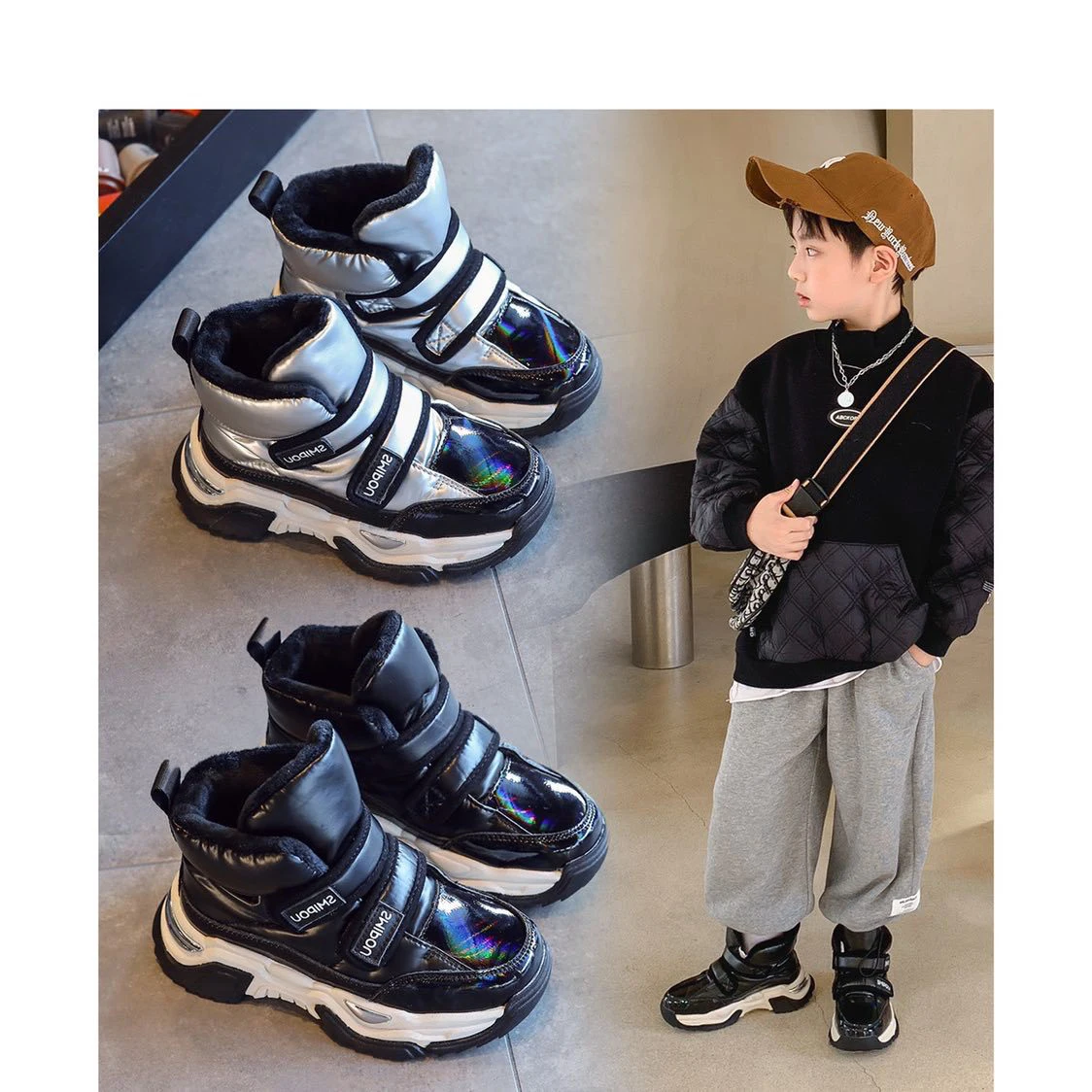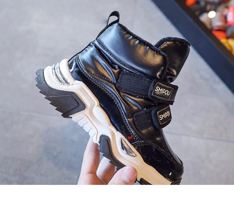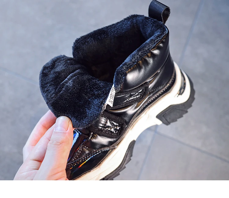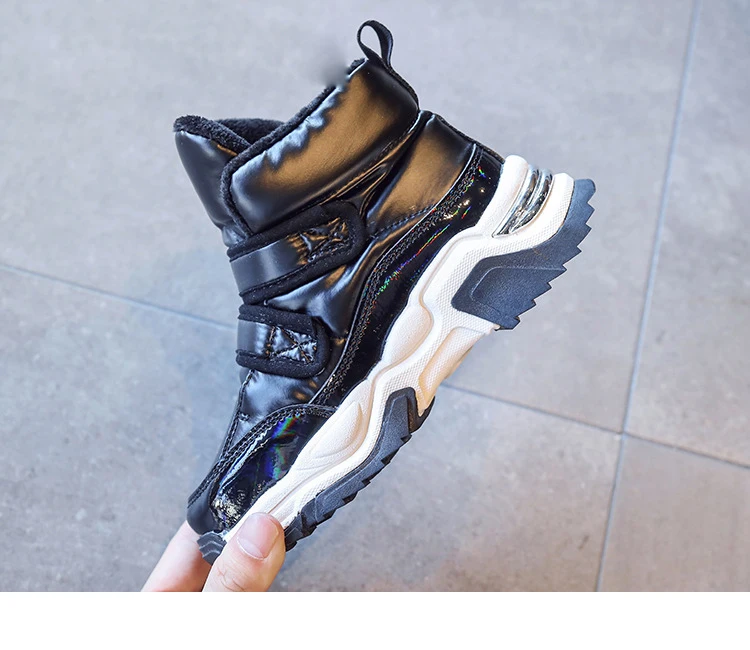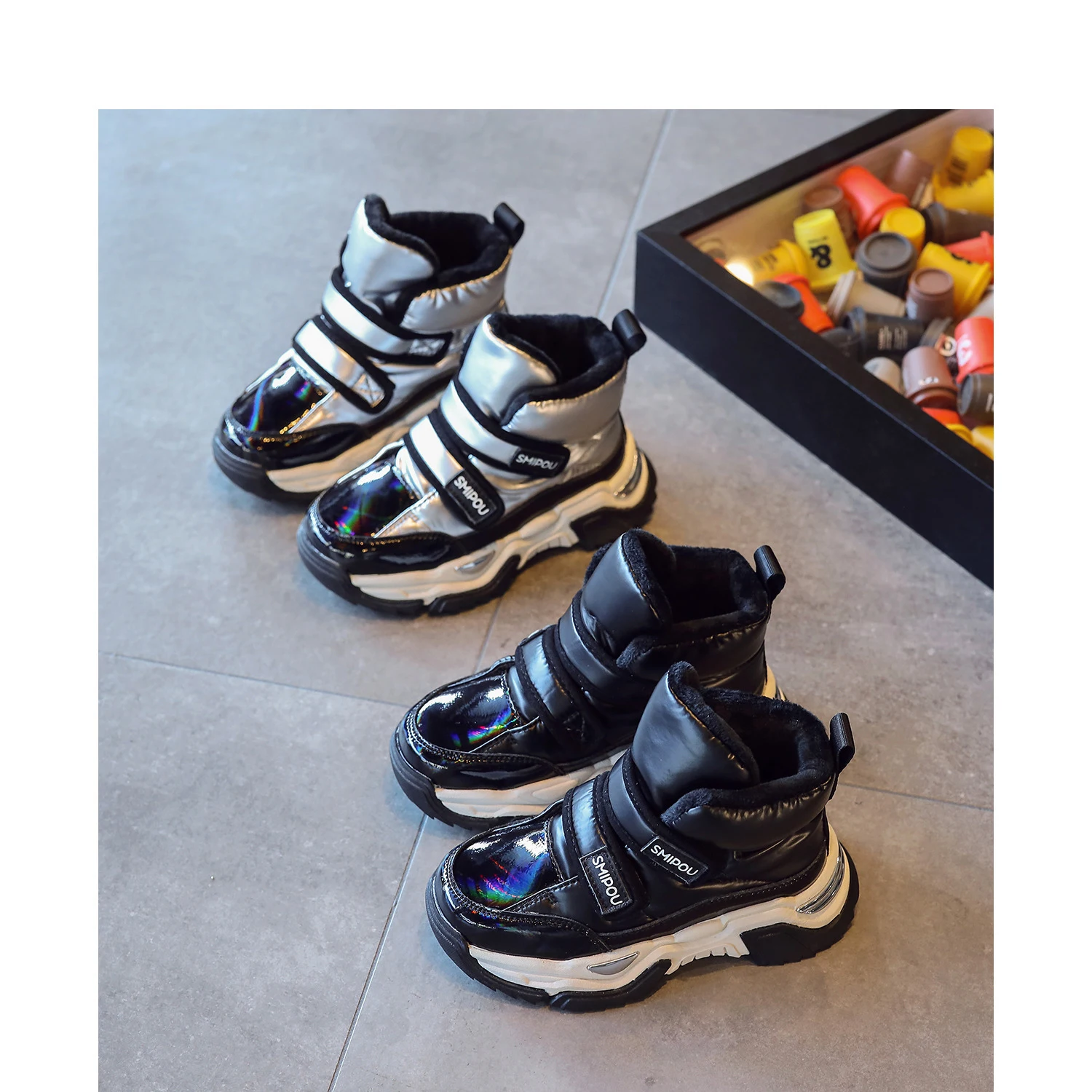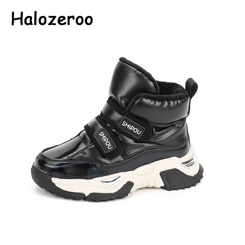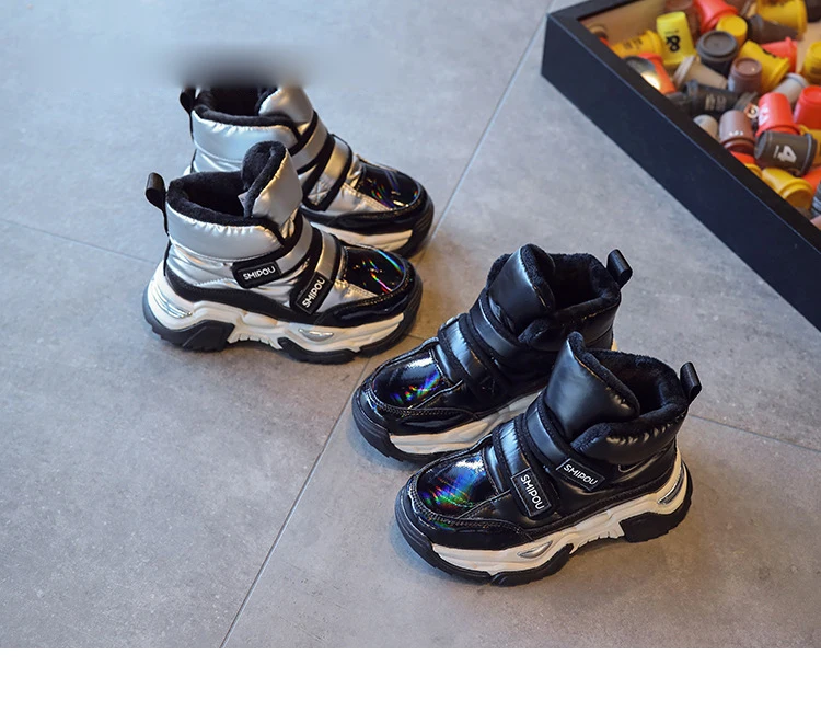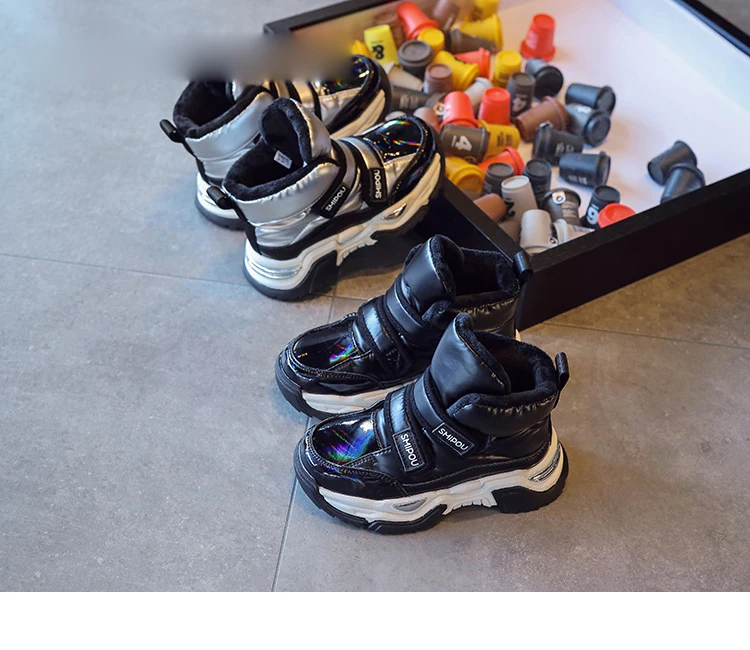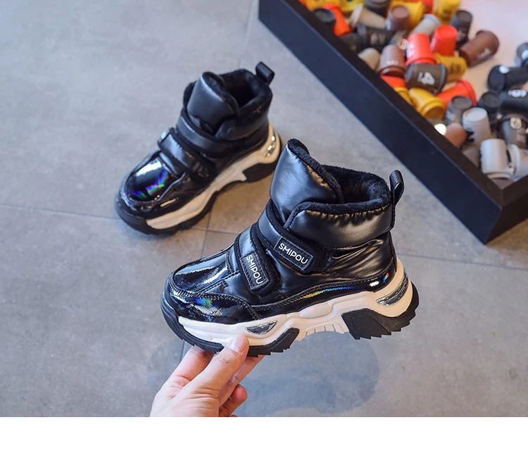 Зимние детские ботинки для снежной погоды, теплая обувь для маленьких мальчиков, Детские Водонепроницаемые брендовые ботинки для девочек, мягкие модные ботинки, черная обувь без застежки
