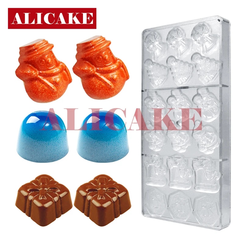 Рождественские поликарбонатные формы для шоколада, форма в виде колокольчиков Санта-Клауса, Подарочная форма, поднос, формы для шоколада, форма для выпечки, кондитерские инструменты