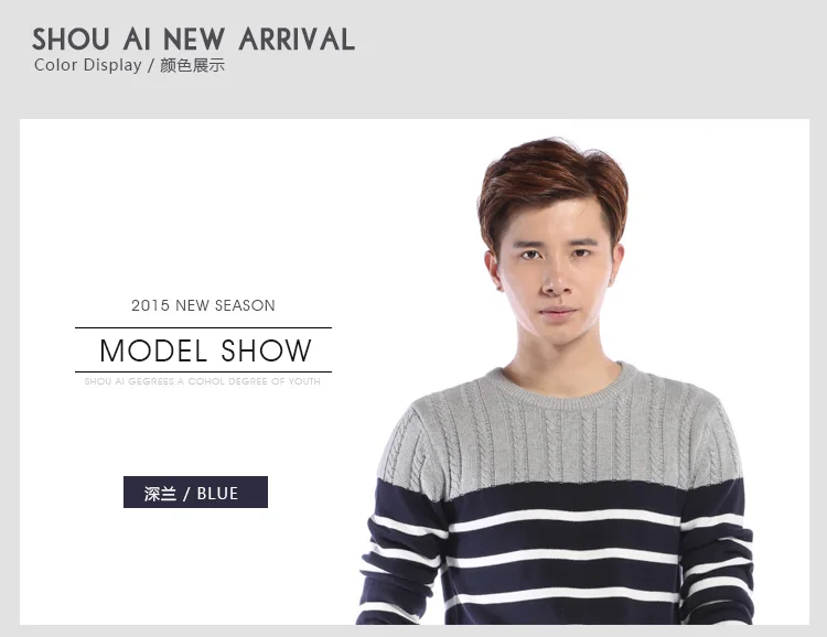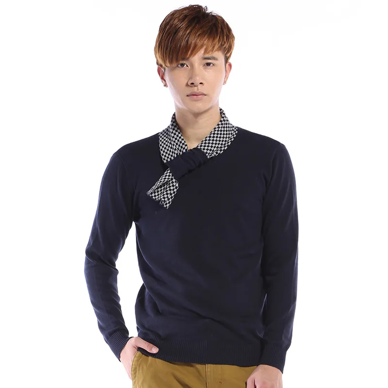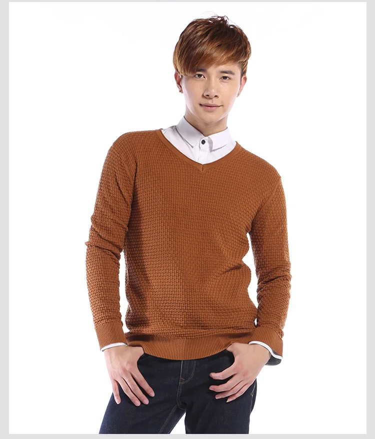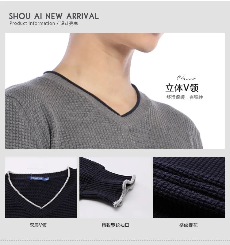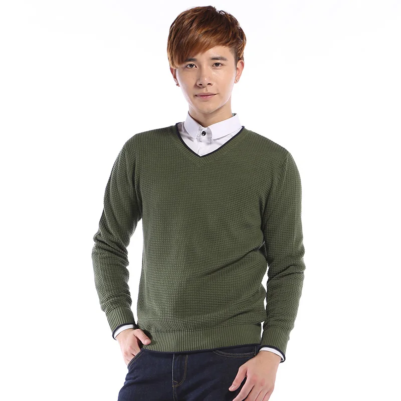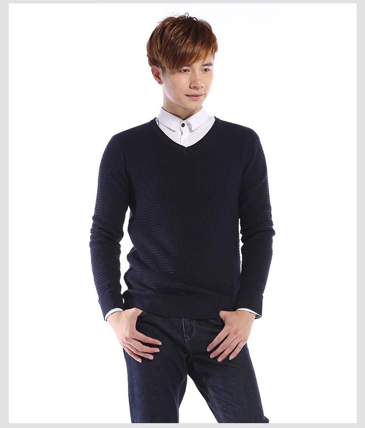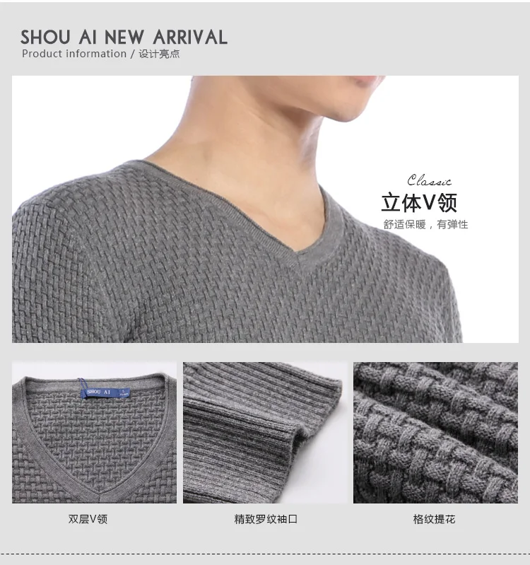 Мужской пуловер с круглым вырезом, с V-образным вырезом