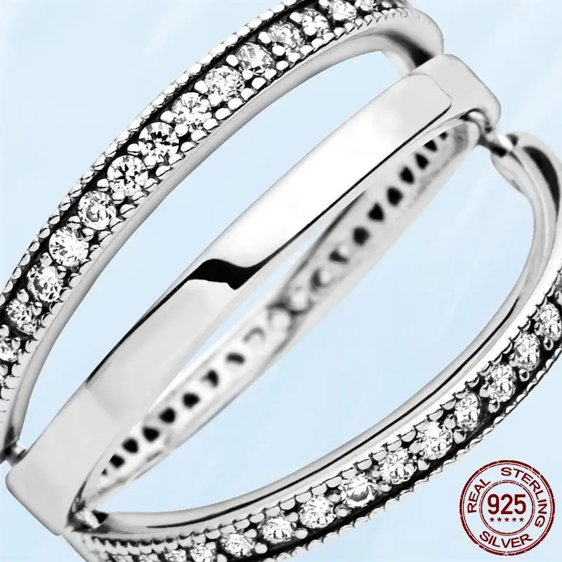 Женское кольцо из серебра 925 пробы, модное кольцо со сверкающими и...