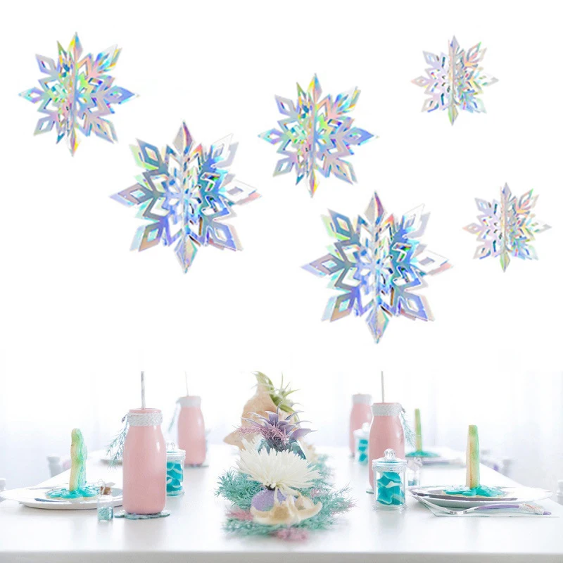 Лазерная 3D Снежинка, 6 шт.компл., замороженное украшение для дня рождения, бумажные гирлянды, рождественские украшения для дома, новый год
