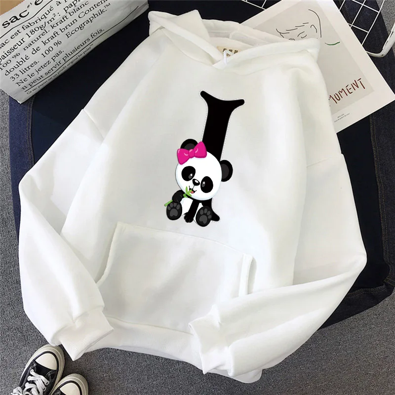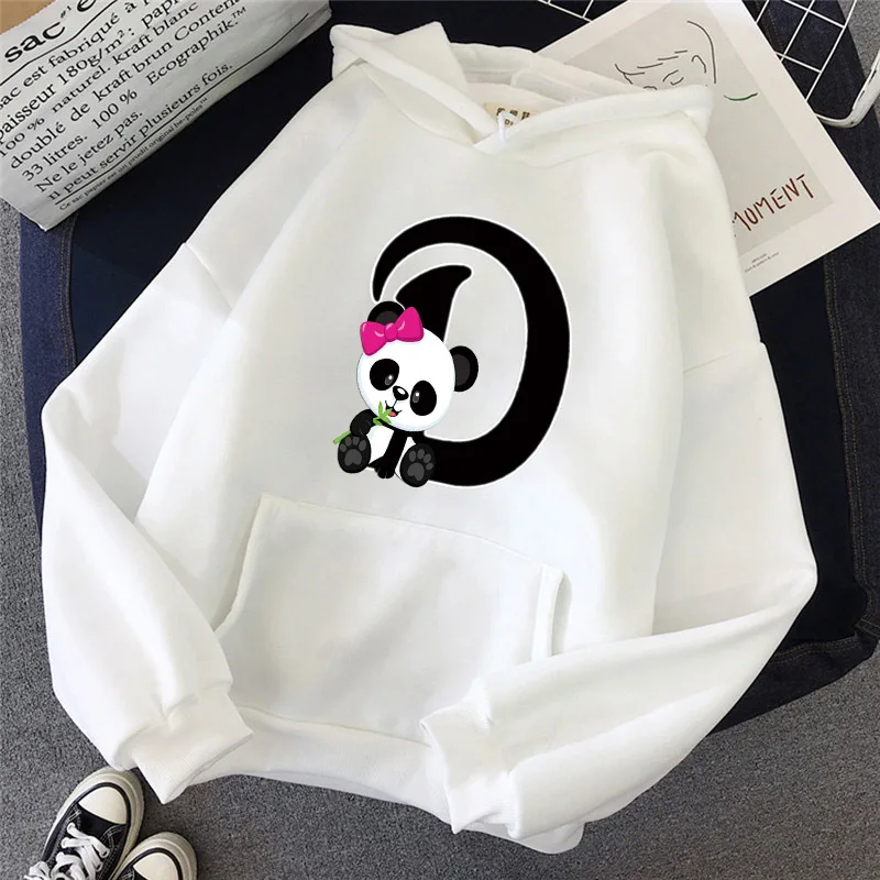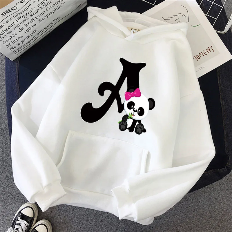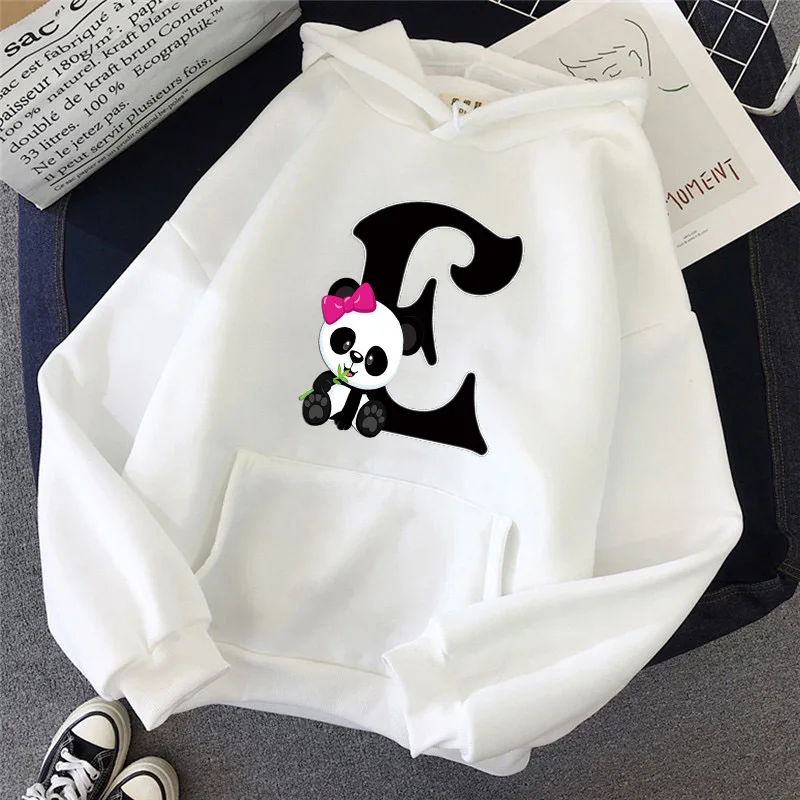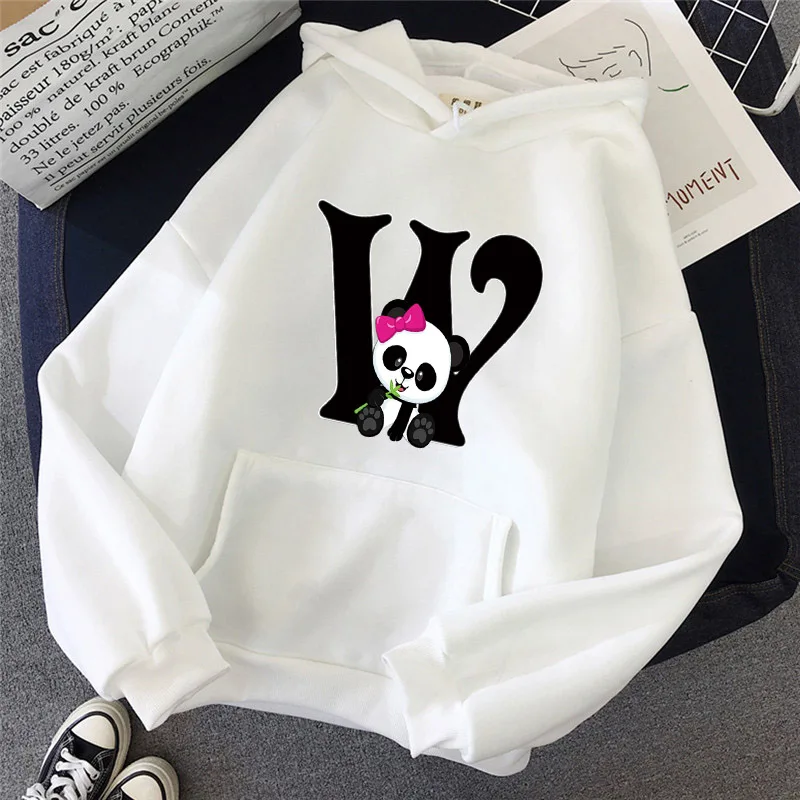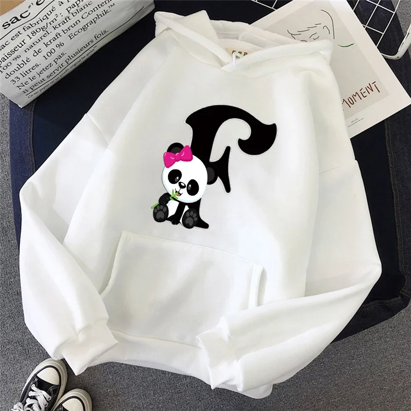 Худи женское уличное с принтом алфавита панды, теплая плюшевая спортивная одежда с длинным рукавом, повседневные женские толстовки большого размера
