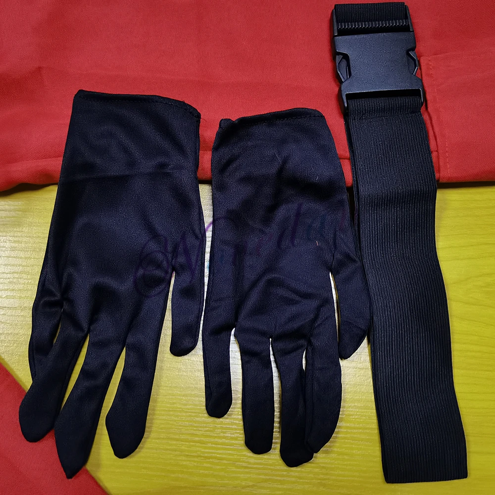 Перчатки и маски предназначены для взрослых. Маска очень тонкая, прибыла сломана. Окрашенная маска (символ в белом цвете) низкого качества. Одежда и другие аксессуары, все в порядке. Согласно ad! Быстрая доставка... прибыла в течение 2 недель.
