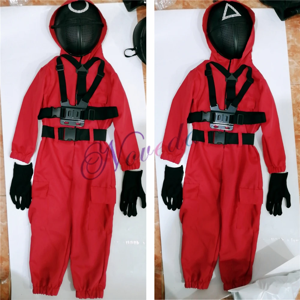 Детский красный комбинезон для игры в кальмар, костюм для хеллоуина вечерние Новогодний подарок для детей