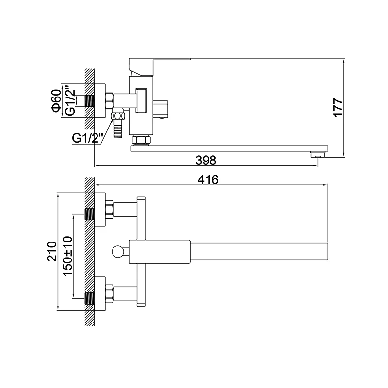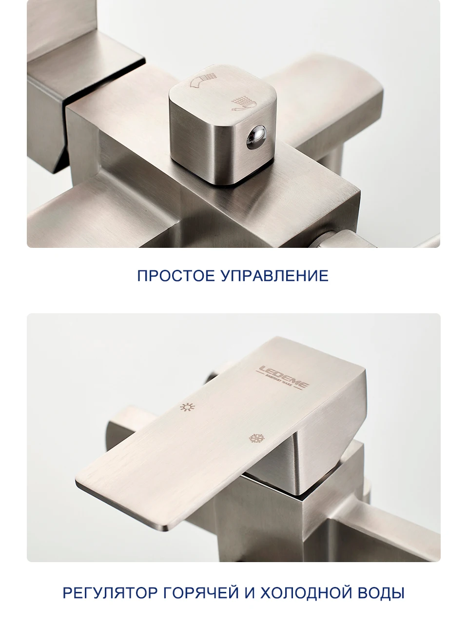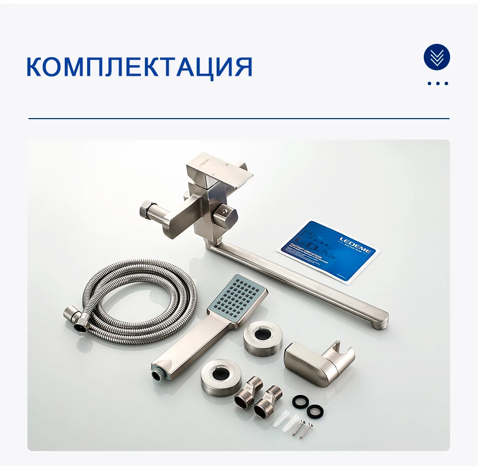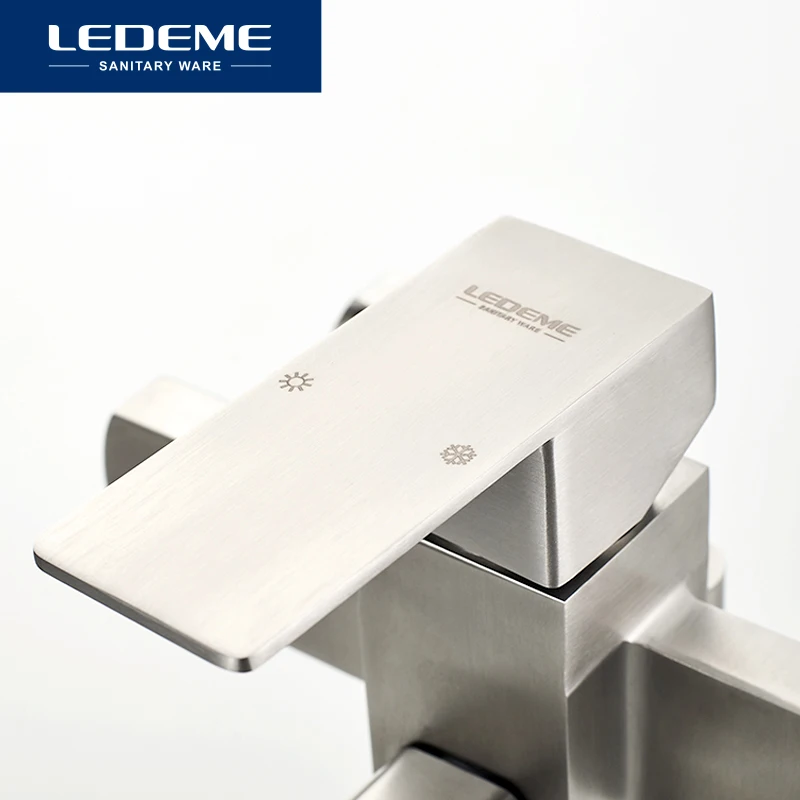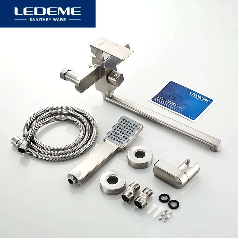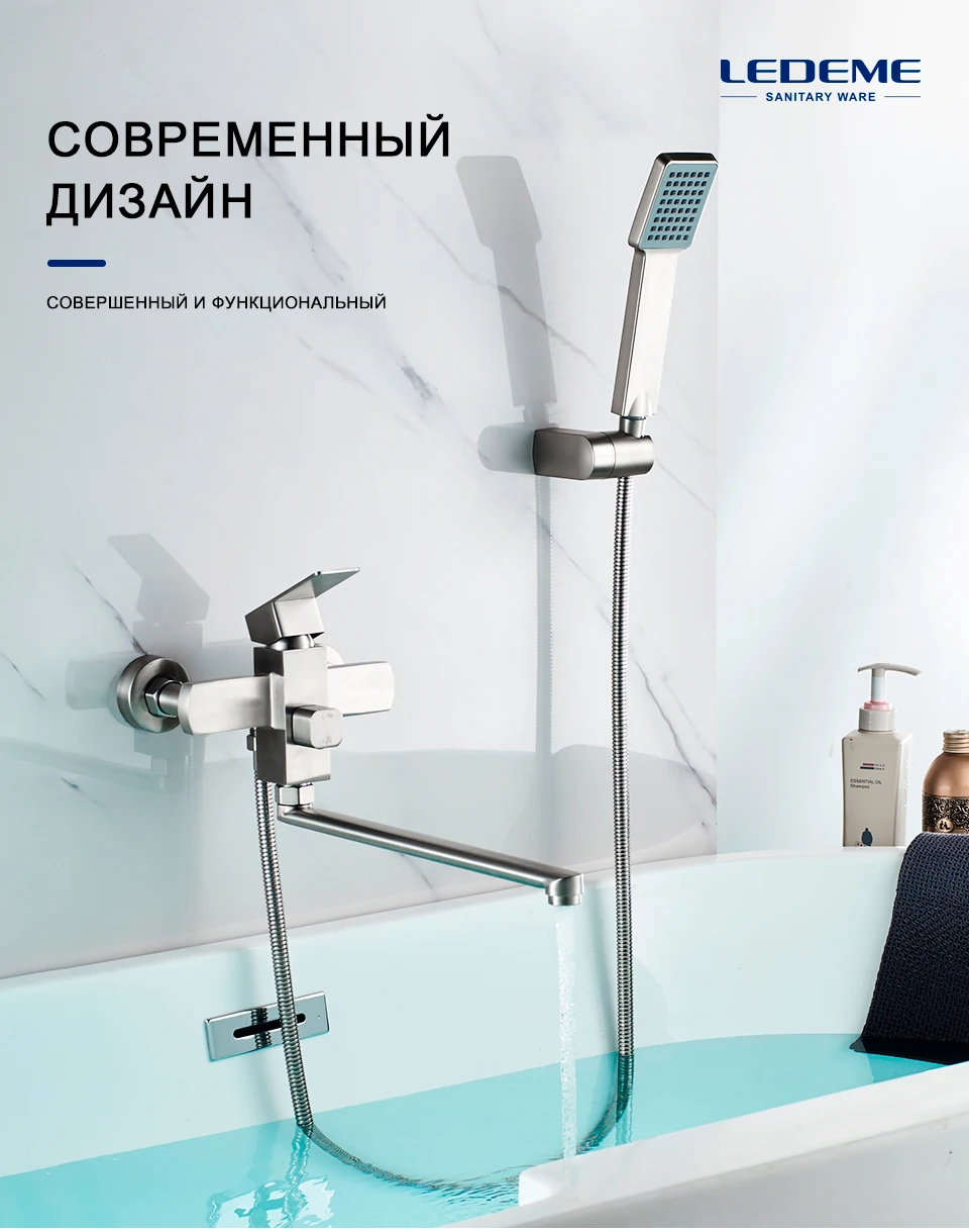 LEDEME Смеситель для ванны, нержавеющая сталь(SUS304), однорычажный, с длинным поворотным изливом, дивертор в корпусе, L72233