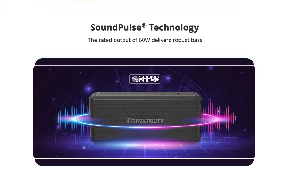 1. SoundPulse®Технологии;2. Номинальная мощность 60 Вт;3. 2,1-канальный аудио для стереозвука усиленных басов;4. Истинное беспроводное стерео для более интенсивного звука;5. Бесшовное соединение NFC;6. Три EQ эффектов переключаемый и 10-часов проигрывания;7. IPX5 Водонепроницаемый, голосовой помощник и интуитивно понятная сенсорная панель.* Оснащен 2 твитерами, 1 НЧ-динамик вместе с 1 пассивным радиатором и 2 усилителями, обеспечивает определенный звук.