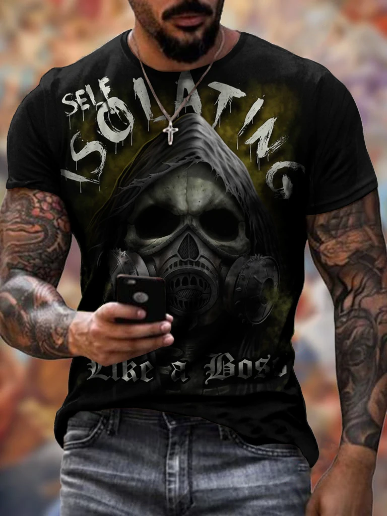 Мужская футболка с рисунком черепа, футболка с круглым вырезом, лет...