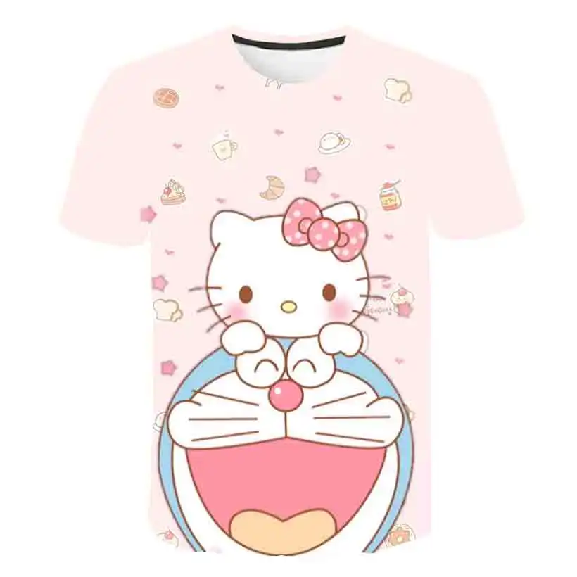Забавная Милая футболка Doraemon для мальчиков и девочек с 3D принтом, летняя детская одежда с коротким рукавом, футболка с мультяшным принтом