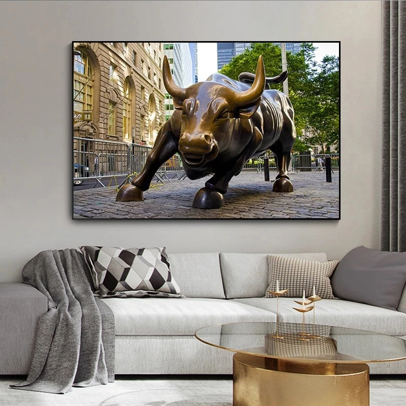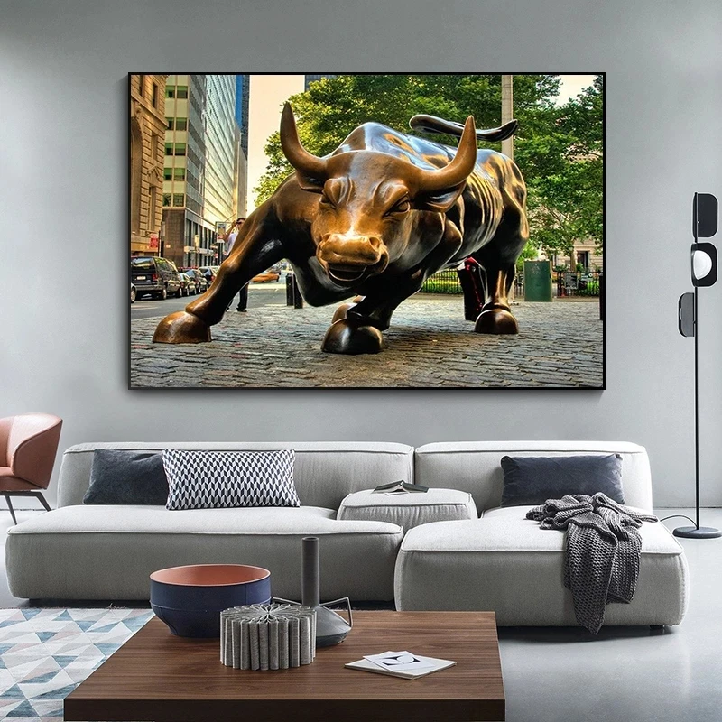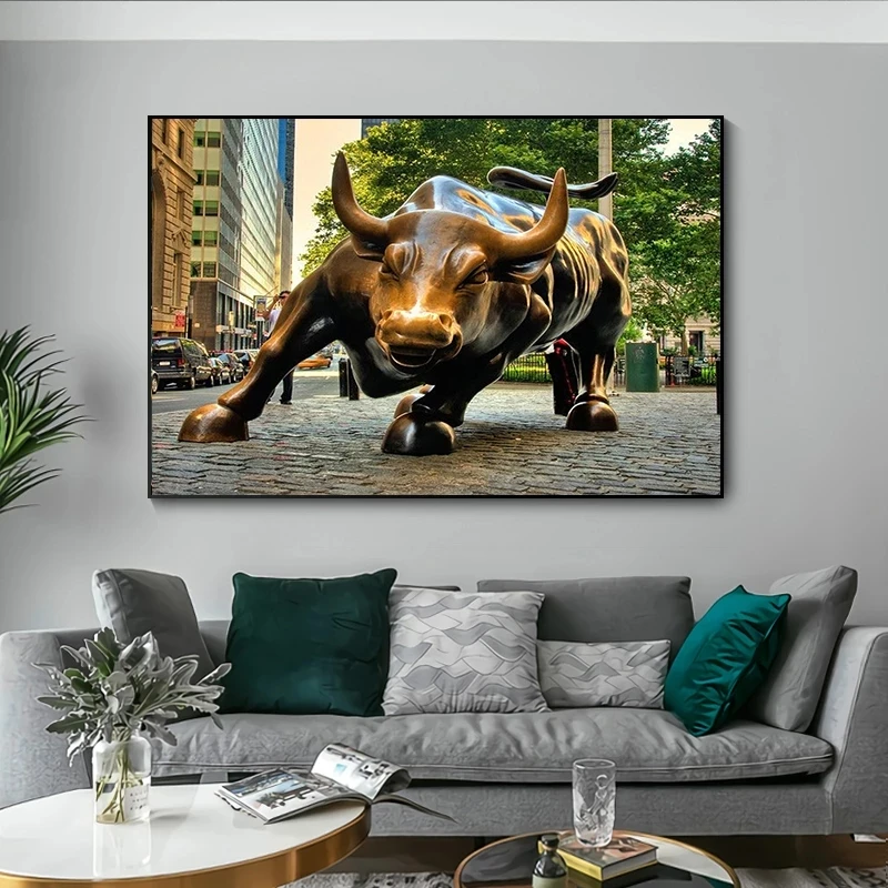 Плакат Настенная картина настенная улица медный бык печать на холст...