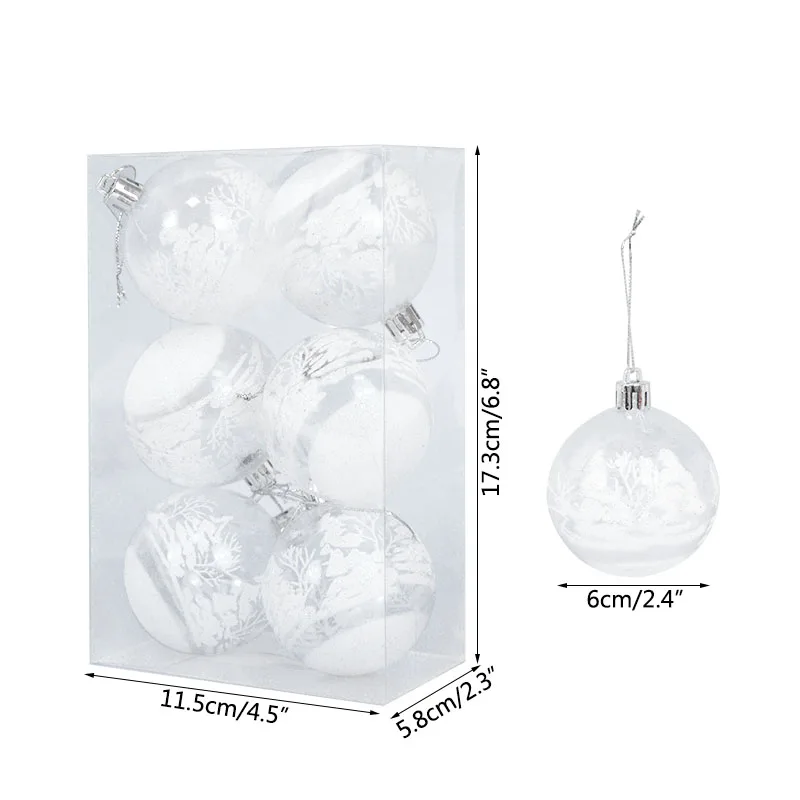 6 шт., 6 см, прозрачные Рождественские шары-подвески для рождественской елки