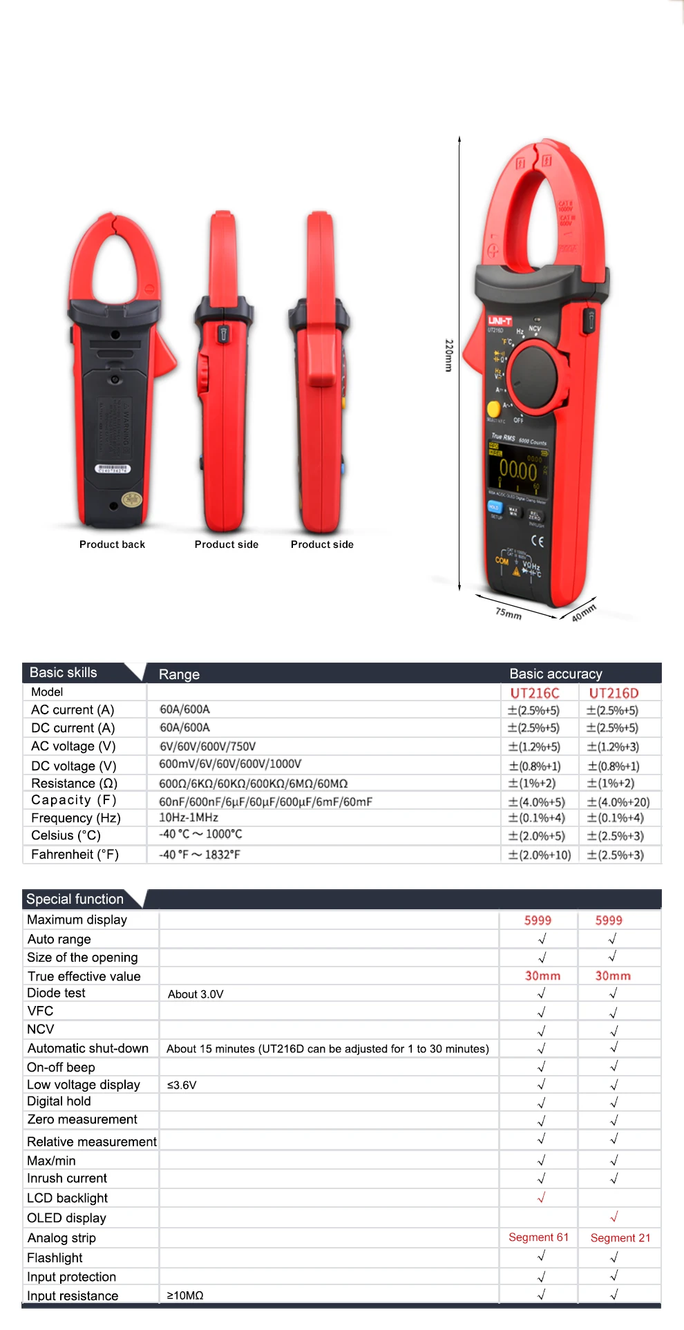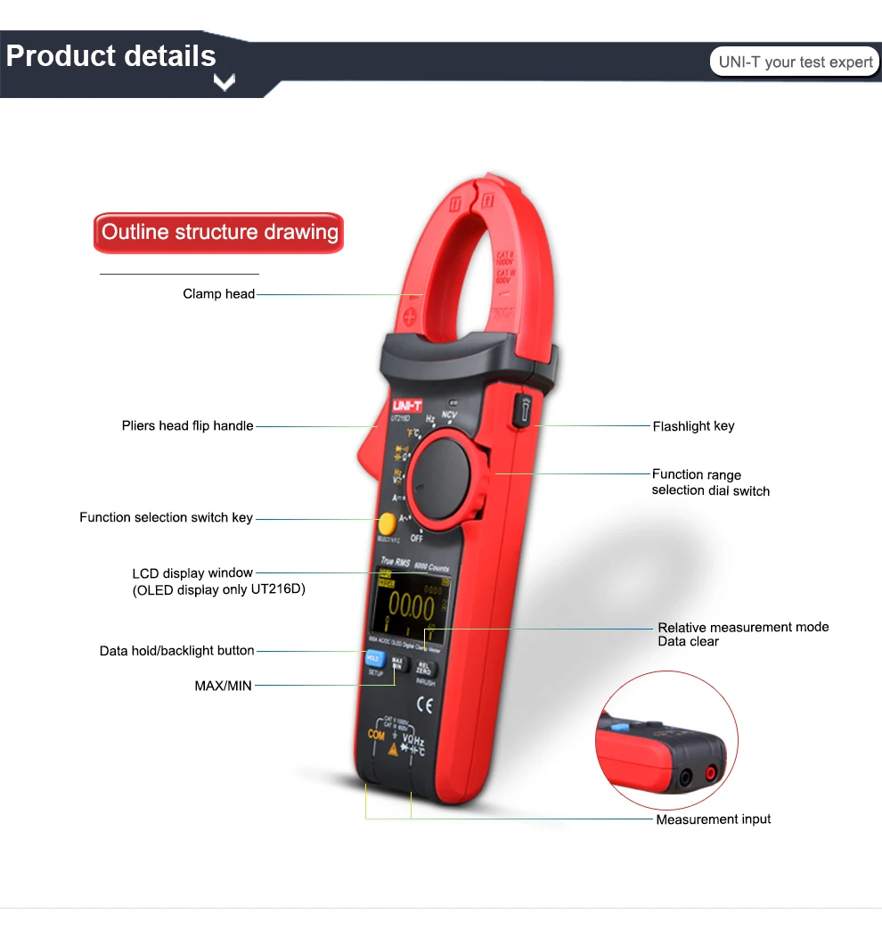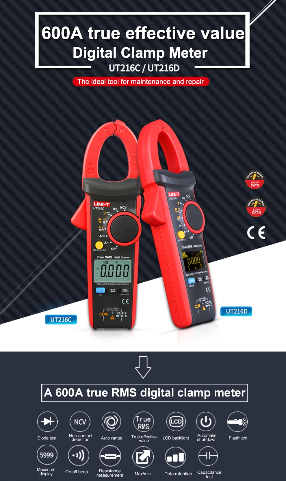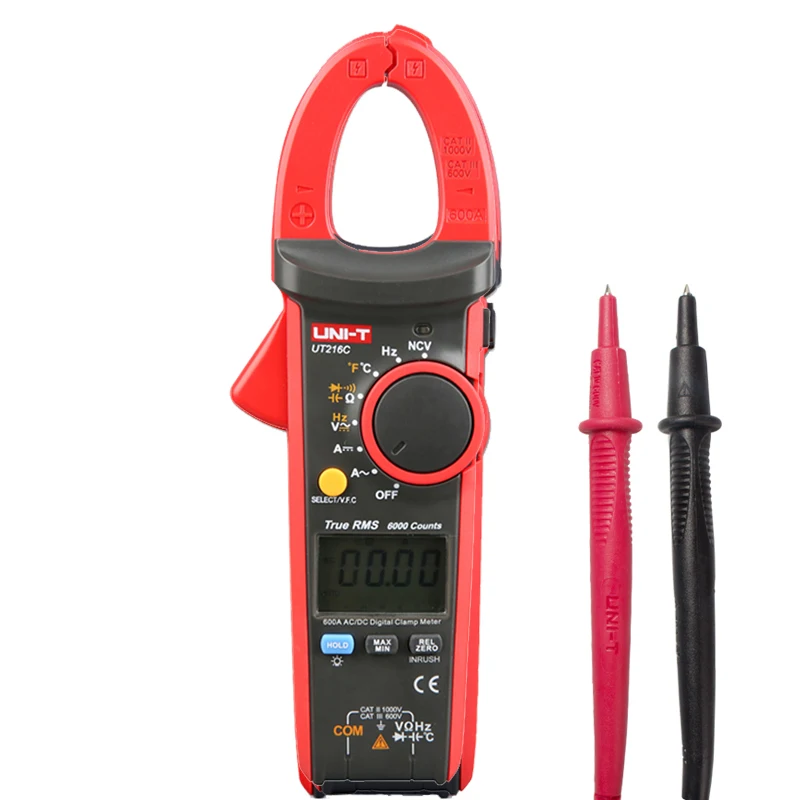 Цифровые зажимные счетчики серии UT216 предназначены для измерения высокочастотных токов (до 400 Гц) в серверных комнатах, ИТ-системах и т. Д. Его конструкция с двойным впрыском дает пользователям более удобное сцепление и повышенную долговечность. UT216's 6000 граф дисплей также обеспечивает более точные показания для пользователей.