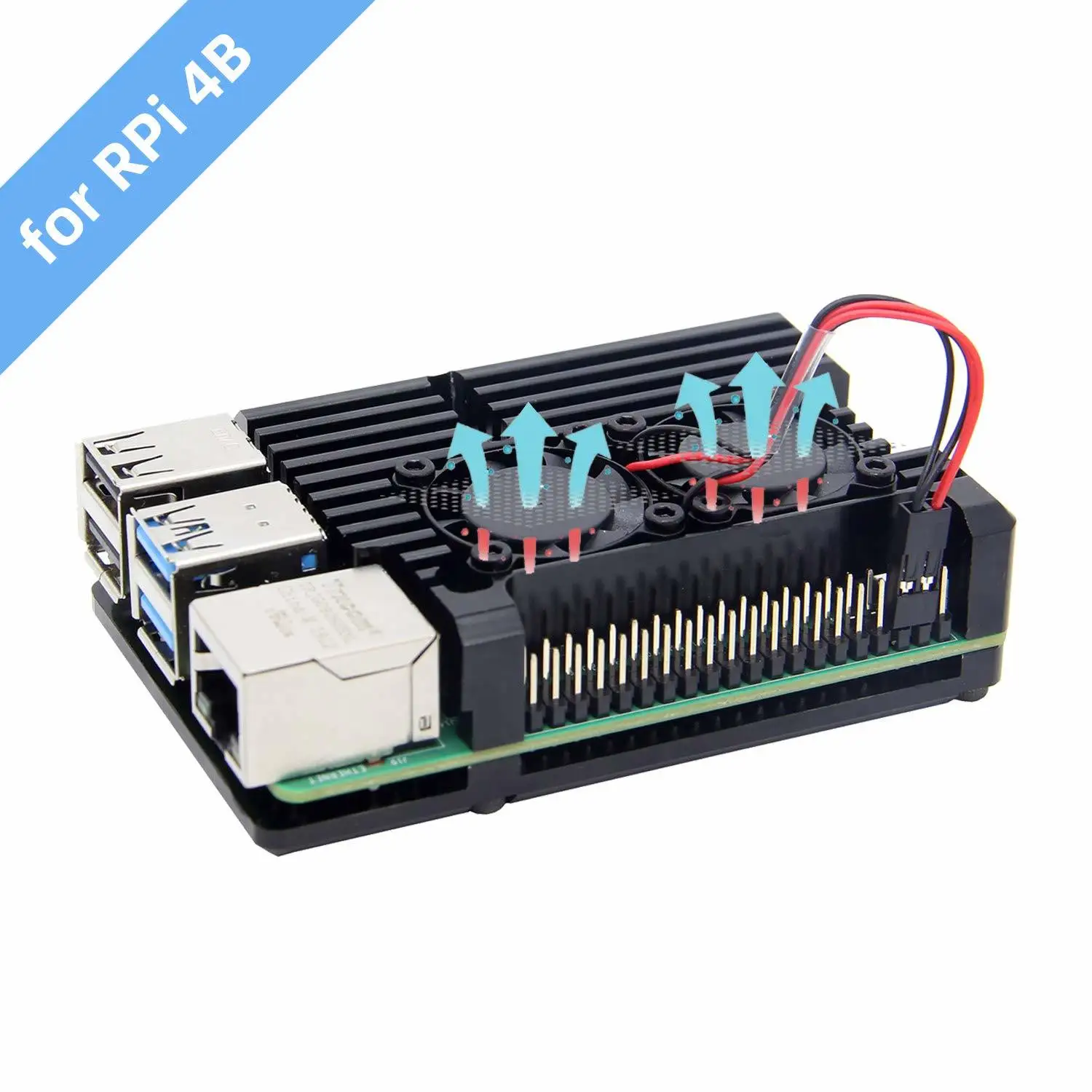 Чехол Pi 4, армированный чехол для Raspberry Pi 4, металлический чехол с двойным вентилятором из алюминиевого сплава, Raspberry Pi 4 Fan, Pi 4 Heatsink для Raspberry P