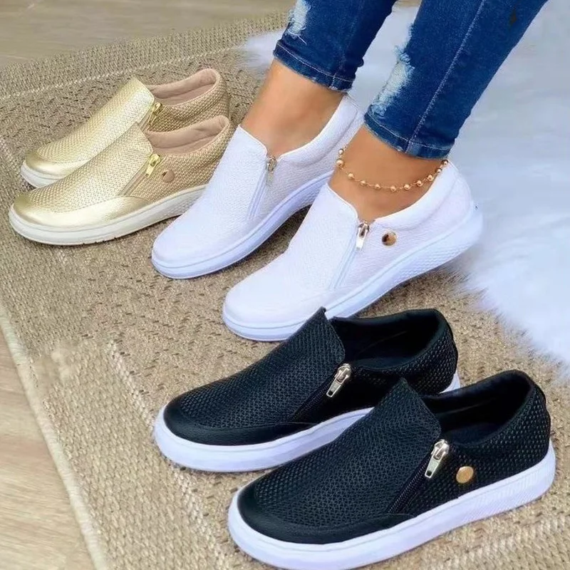 Женские кроссовки из ПУ кожи, на плоской подошве, с круглым носком