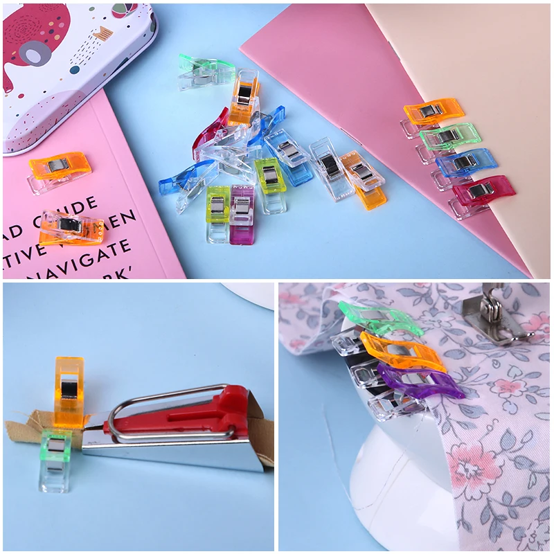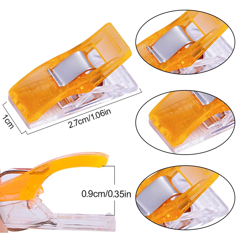 Тип: швейные зажимыРазмер: 2,7х1 смЦвет: красный/розовый/оранжевый/желтый/зеленый/синий/фиолетовый/прозрачный/случайный цветКоличество: 20 шт./пакет; 10 шт./пакетМатериал: пластик + металл