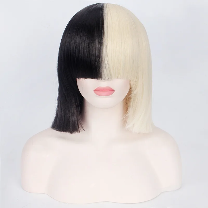 Парик для косплея из аниме это акция, прямые синтетические волосы для женщин, с короткими волосами светлого и черного цвета, с челкой, 35 см, на Хэллоуин