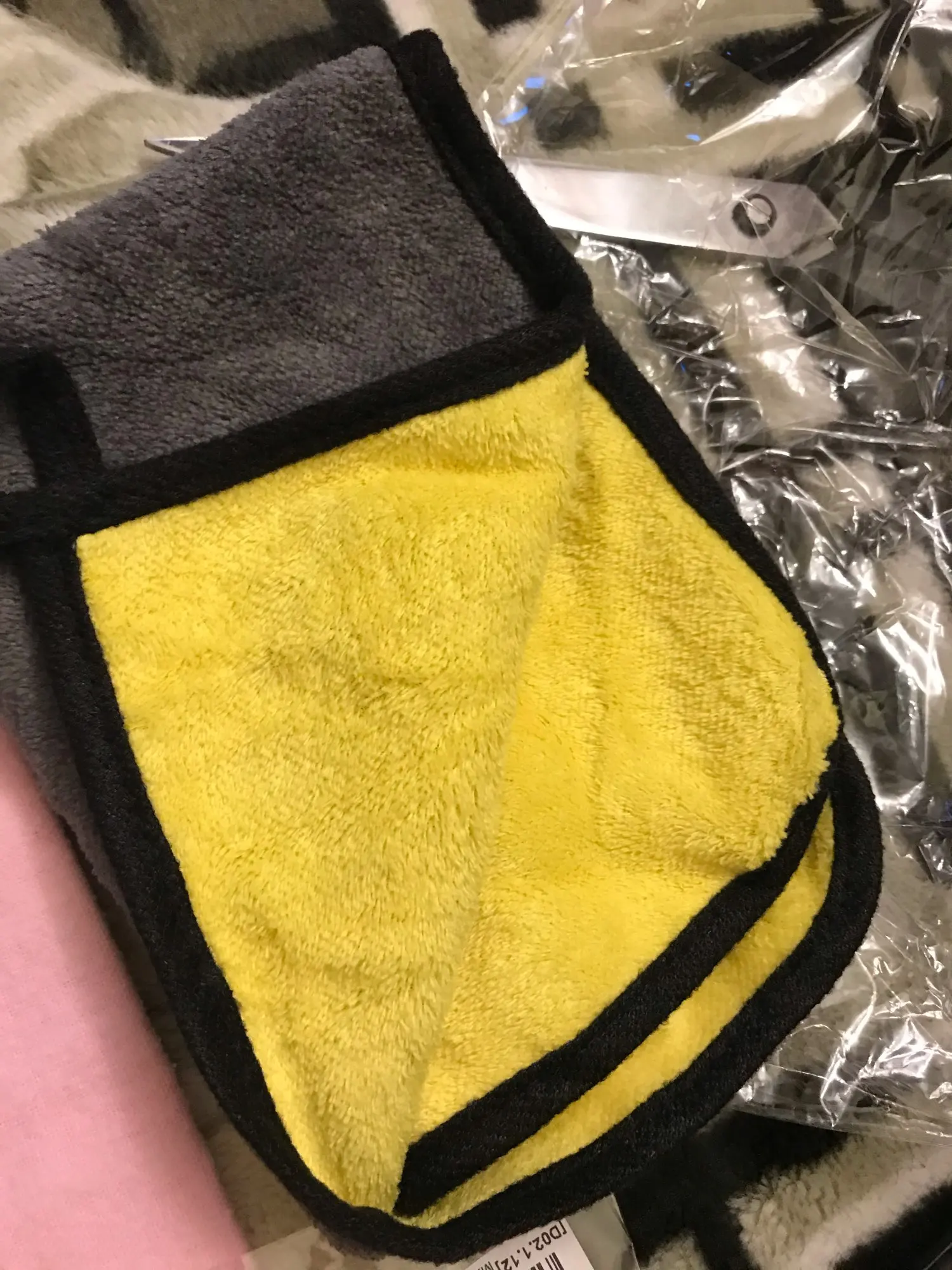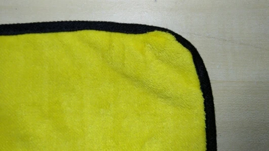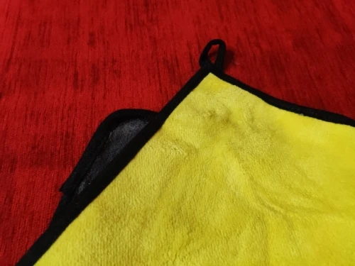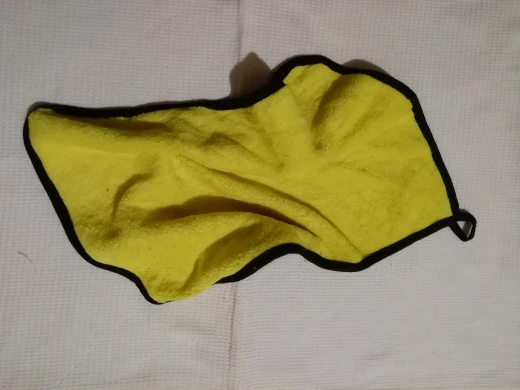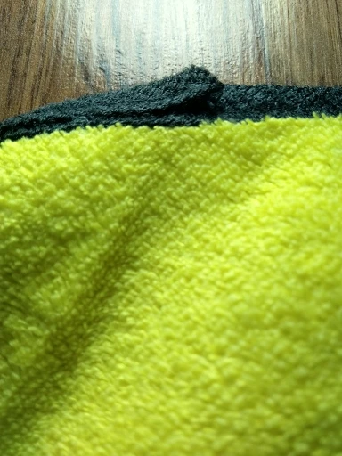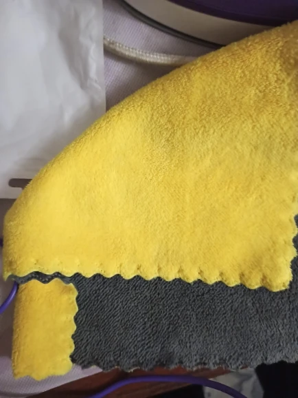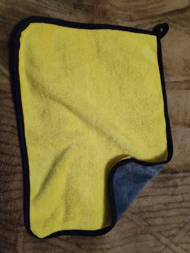 Хорошая тряпушка. Ткань плотная, ворс частый. Качество очень хорошее. Впитывает хорошо. Серая сторона синтетическая, более сухая после отжима. Жёлтая зато в сухом состоянии больше впитывает. Очень рекомендую.