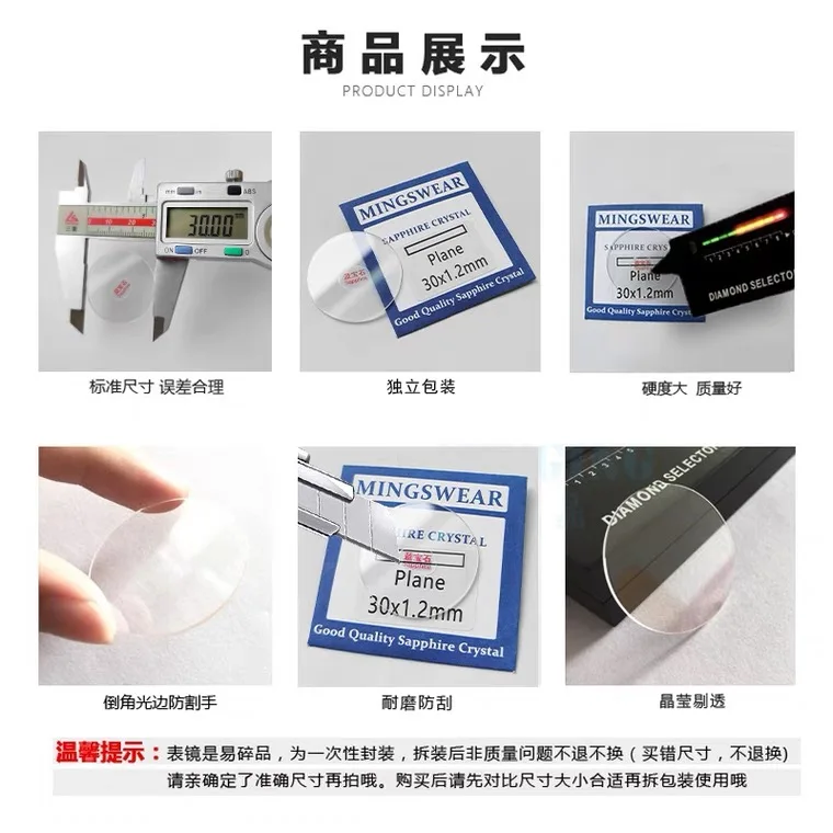 Много размеров диаметром от 25 мм до 34,5 мм, толщиной 1,0, 1,2, 1,5 мм, сапфировое зеркальное стекло в форме плоскости для оправы наручных часов