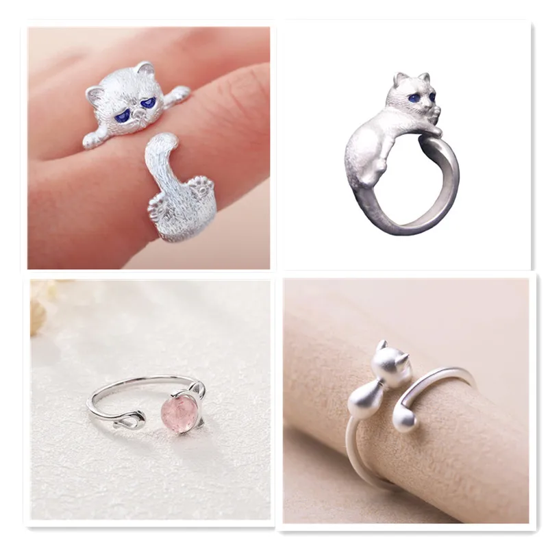 Милые реалистичные открытые кольца в виде кошки для женщин, регулир...