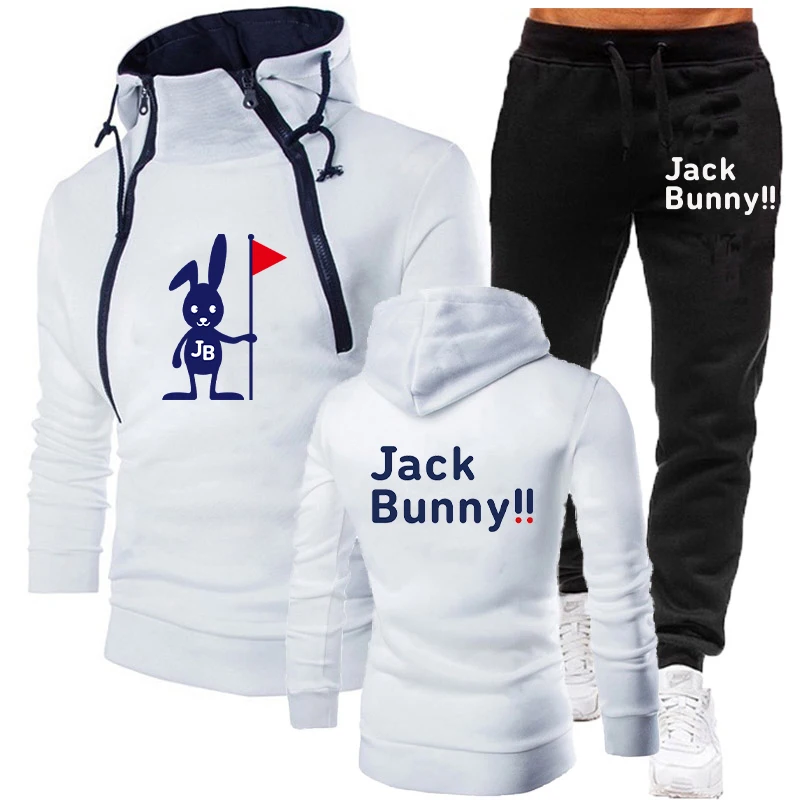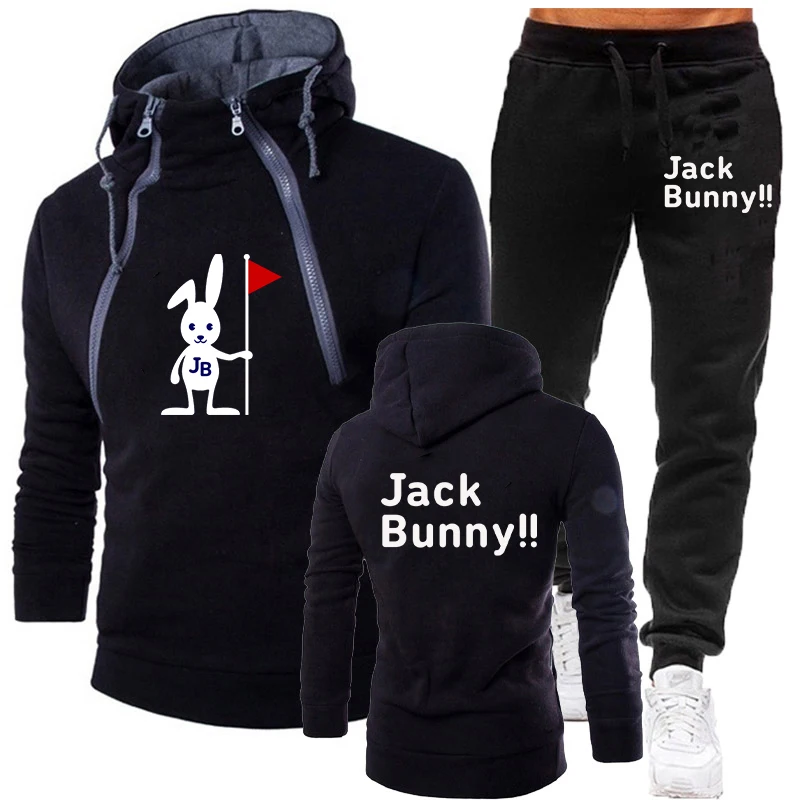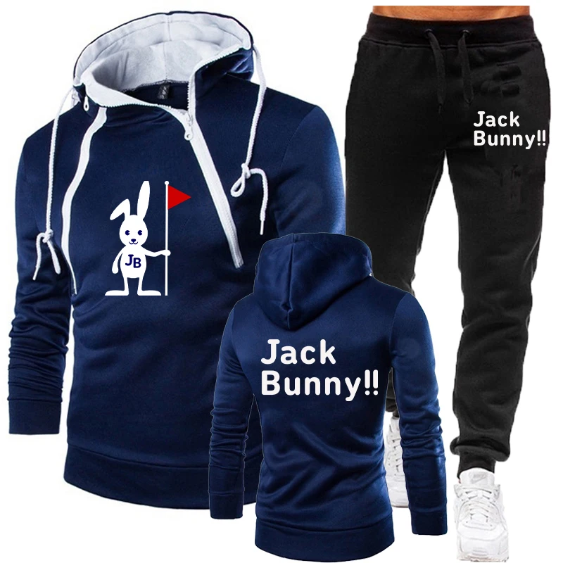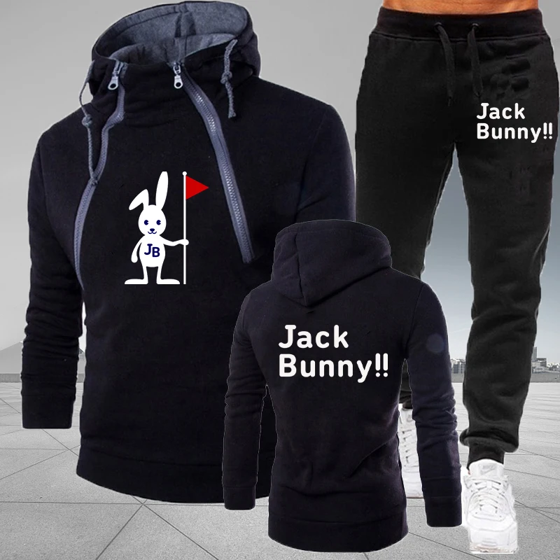 Новый осенне-зимний модный мужской спортивный костюм с двойной цепочкой свитер с капюшоном + повседневные брюки с принтом Джека Банни мужская одежда