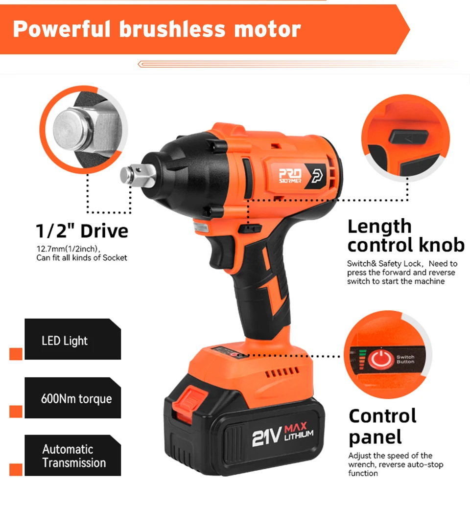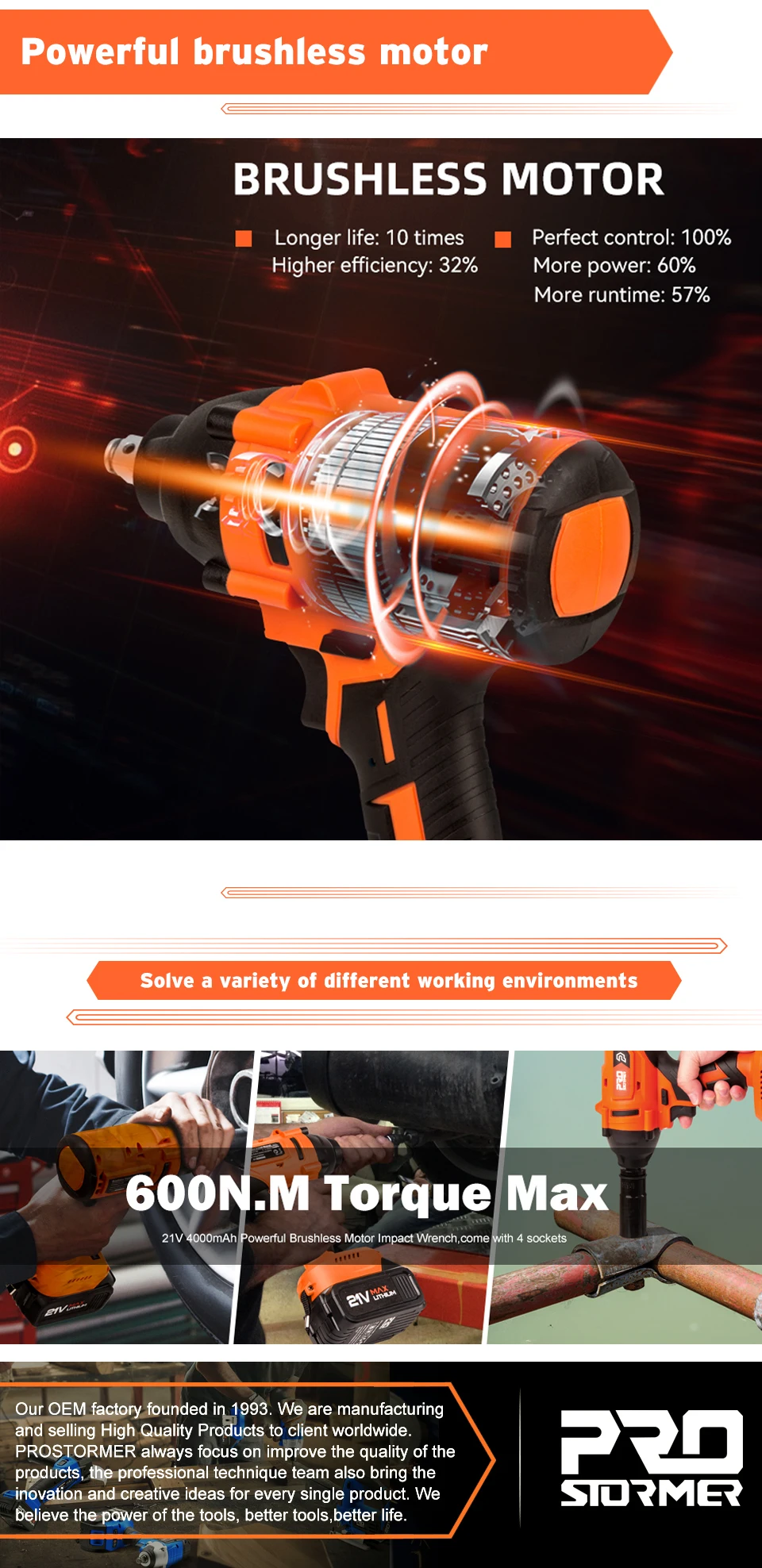 21V Электрический 600N.m бесщеточный гаечный ключ для автомобильных шин беспроводные электроинструменты литий-ионный аккумулятор от PROSTORMER