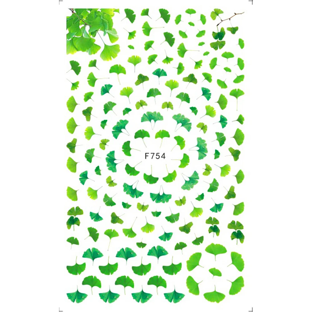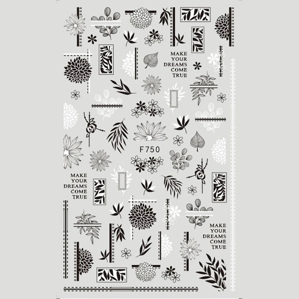 1 лист черно-белых цветочных листьев, 3D наклейки для ногтей, Самок...