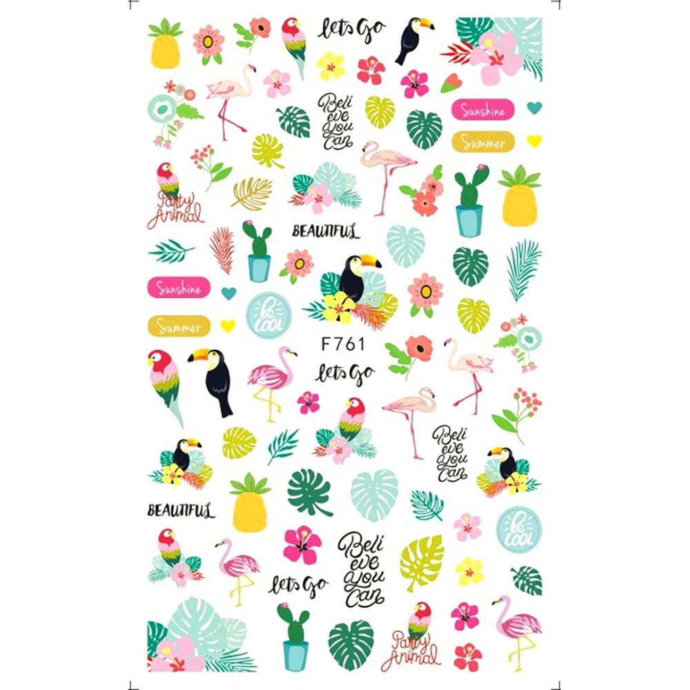 Наклейки с цветами для дизайна ногтей, весна-лето, клей для накладн...