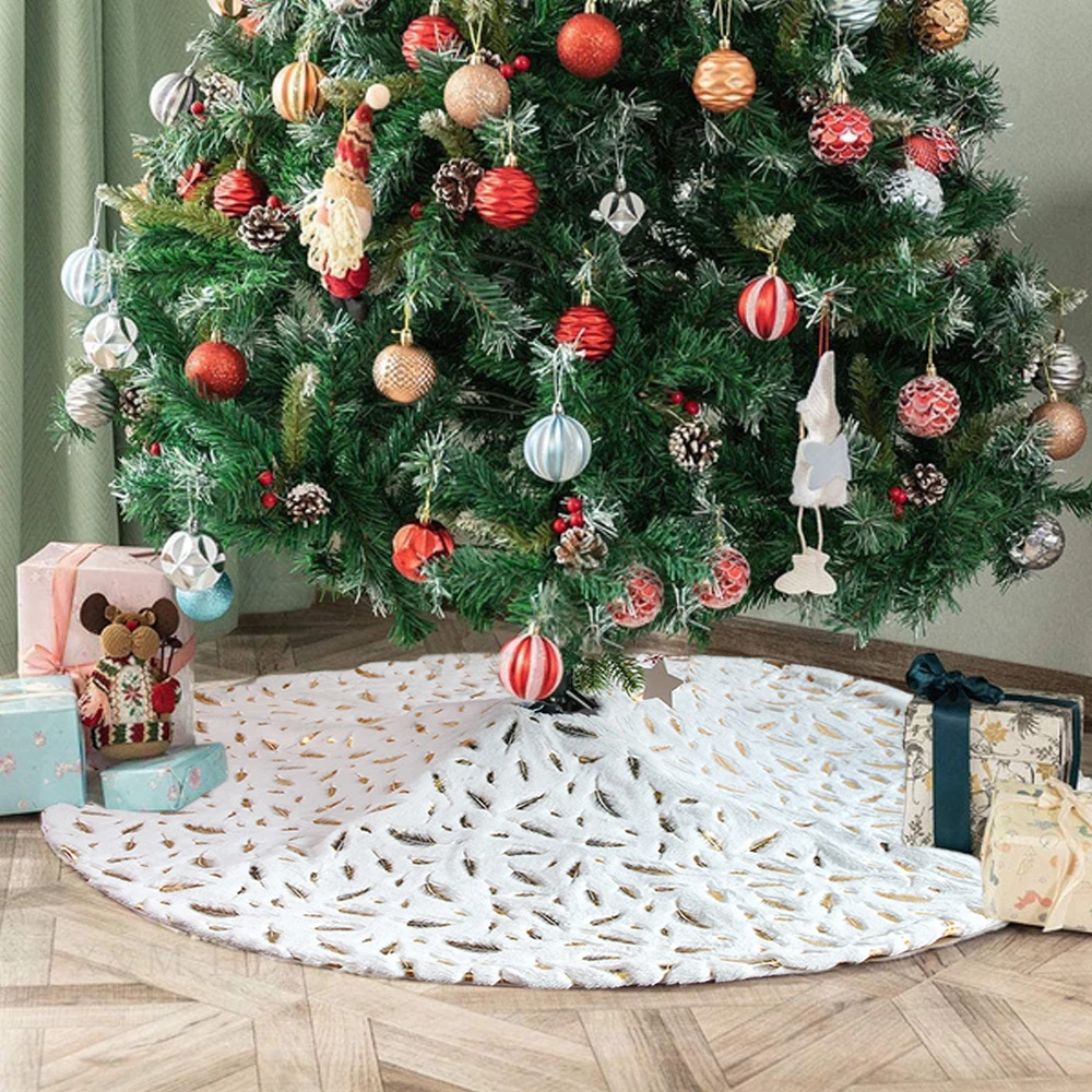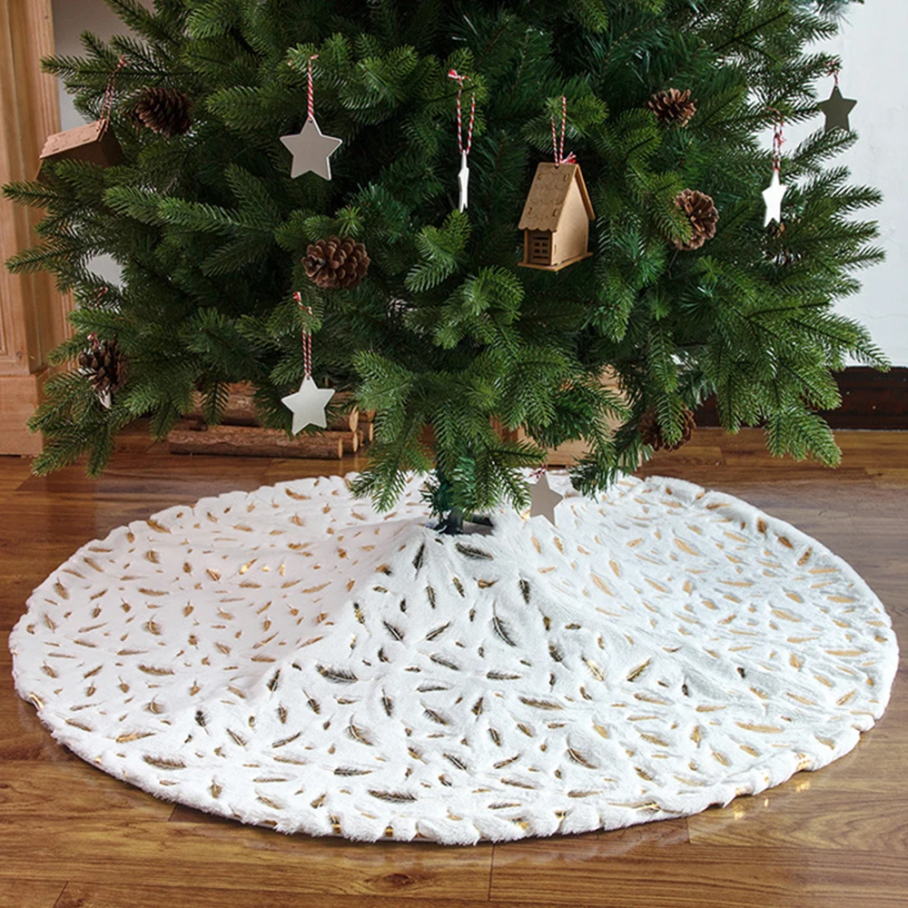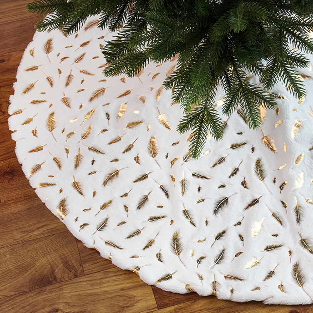 Белая юбка для рождественской елки, фартук с бронзовыми перьями, украшения для елки, юбка для елки, новогодние 2022, рождественские украшения для дома, Рождество