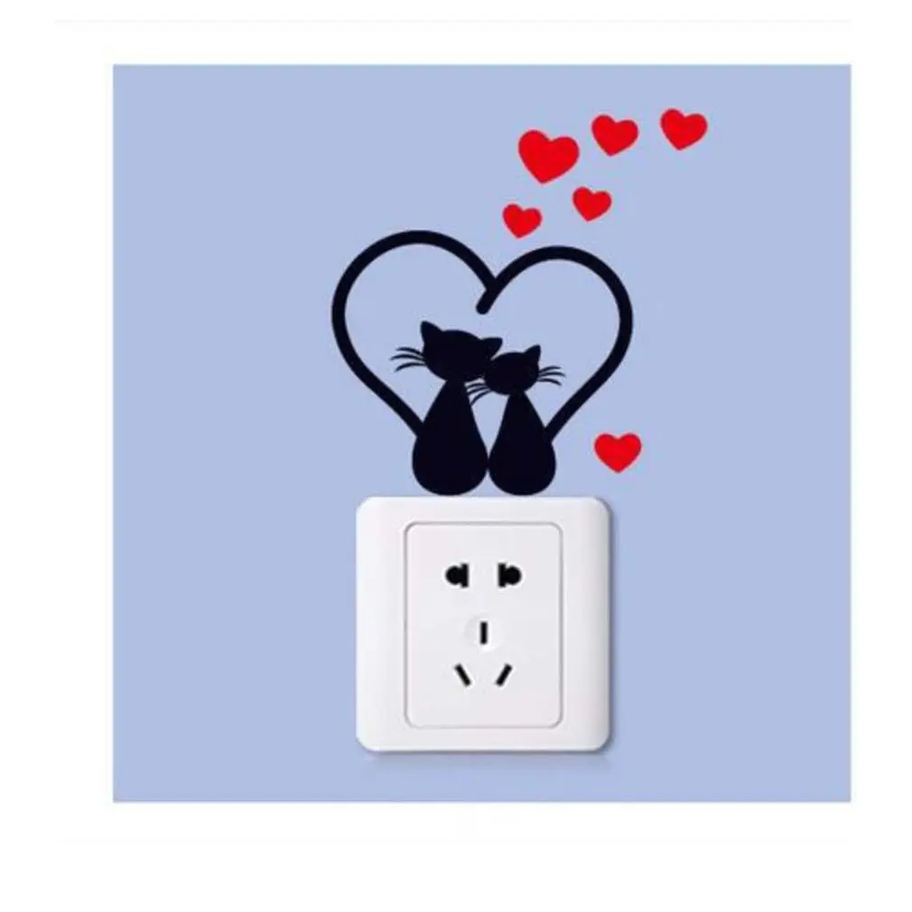 Настенный выключатель с изображением кошки, декоративные съемные настенные наклейки, самоклеящиеся Мультяшные украшения для спальни, гостиной, домашний декор, художественные настенные наклейки