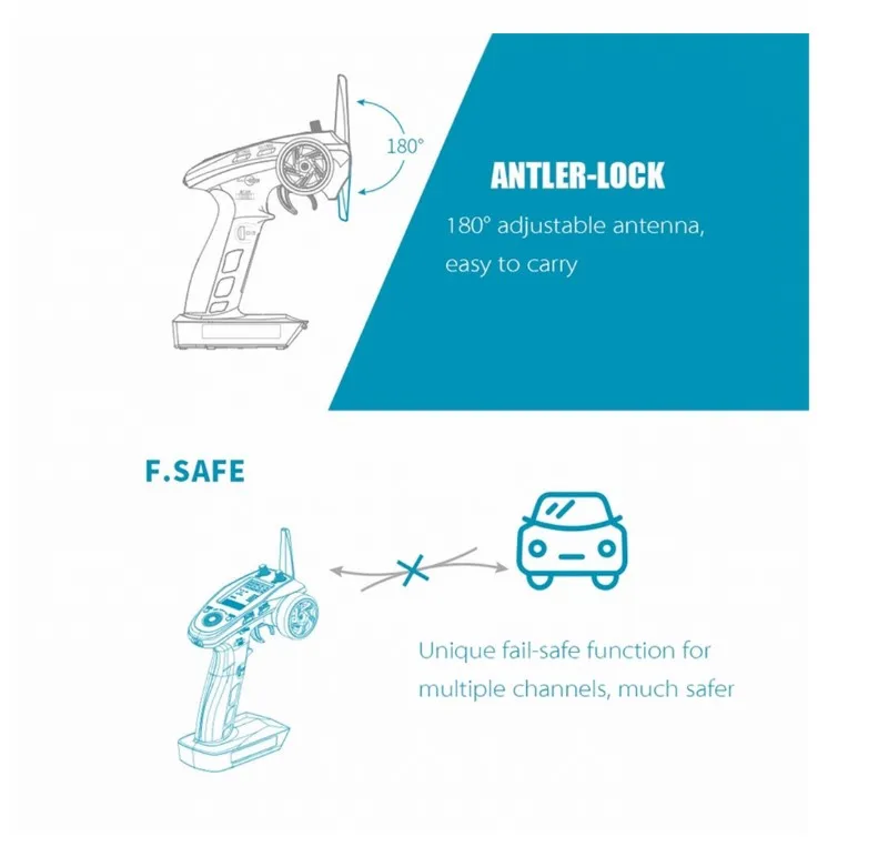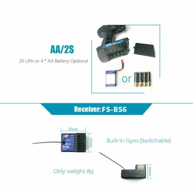 Особенности:Передатчик GT5 использует систему AFHDS 2A 2,4 ГГц, с сильной активной и пассивной защитой от помех. С FS-BS6 приемником, выход 6 каналов, совместимые модели автомобилей, лодок и других моделей.Функция ABS (автоматический тормоз): Эта функция только регулирует канал дроссельной заслонки, включая шесть видов параметров, настройки автоматического тормоза, чтобы адаптироваться к различным моделям трека, для достижения лучшего эффекта торможения и эффекта управления поворотами.F. Безопасная функция (Fail-SAFE защита): Эта функция может защитить безопасность модели, когда приемник не может нормально принимать сигнал от передатчика, И переместите рычаг привода в предварительно установленное положение.Функция Ползания (режим скалолазания автомобиля), функция SVC (режим управления умным автомобилем), Функция стабильности гироскопа.GT5 может хранить 20 моделей, каждая модель может устанавливать параметры по отдельности, но также может написать название модели, легко запоминающееся.Спецификация:FS-GT5 передатчикПодходит для: автомобилей, лодокКанал: 6Частотный диапазон: 2,408-2,475 ГГц2,4 ГГц режим: AFHDS 2AМетод модуляции: GFSKМетод передачи: FHSSОповещение о низком напряжении: AA батареи ниже 4,4 в, 2S литиевые батареи Ниже 7,4 В (не входят в комплект)Длина антенны: 26 ммFS-BS6 приемникВстроенная система стабилизации гироскопаКанал: 6Частотный диапазон: 2,408-2,475 ГГцКоличество полос: 135Система 2,4 ГГц: AFHDS 2AМетод модуляции: GFSKВходная мощность: 4,0-8,4 в постоянного токаРазмер: 30*22*16 ммИнформация об упаковке:Размер упаковки: 27,5*21*12,5 см/10,8*8,3 * 4.9inВес упаковки: 673 гОбщий пакет коробки