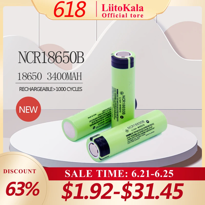 Аккумулятор LiitoKala NCR18650B литиевый, 18650 в, 100% мАч