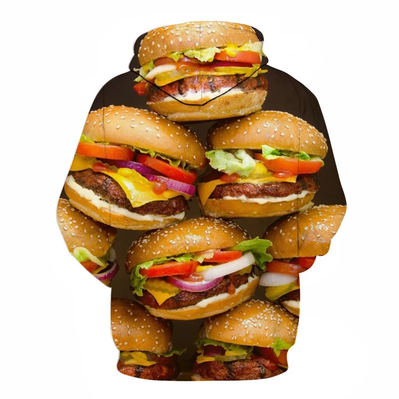 Толстовка мужская оверсайз с принтом гамбургеров, свитшот с 3d прин...