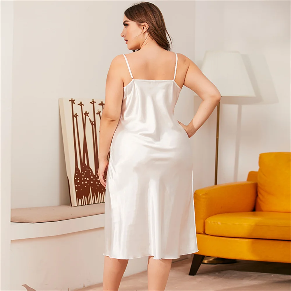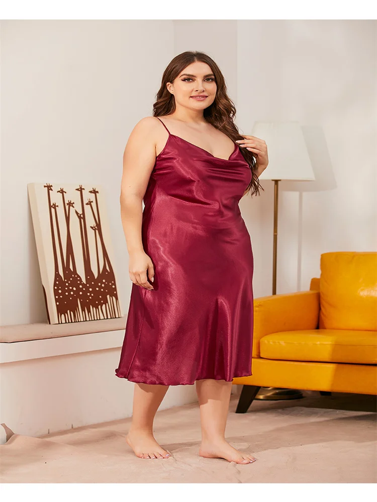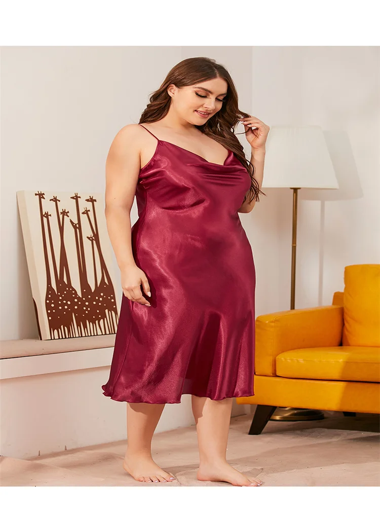 Ночная рубашка женская, атласная, однотонная, размера плюс размера