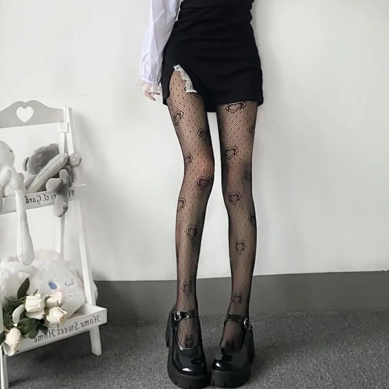 Колготки в виде сердца, черные сетчатые чулки, сексуальные женские ...